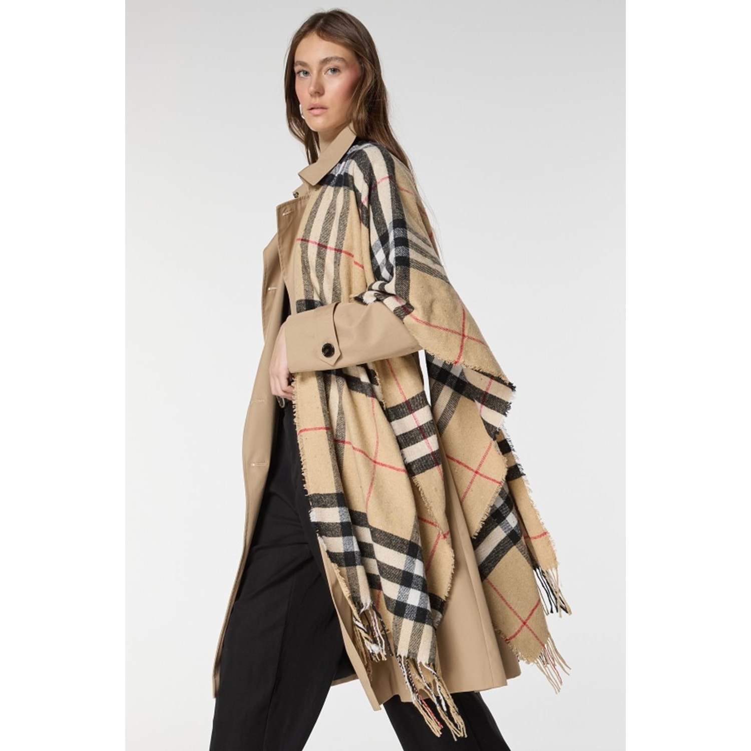 Yumuşak Dokulu Püsküllü Ekose Desen Safran Kalın Omuz Şal Atkı