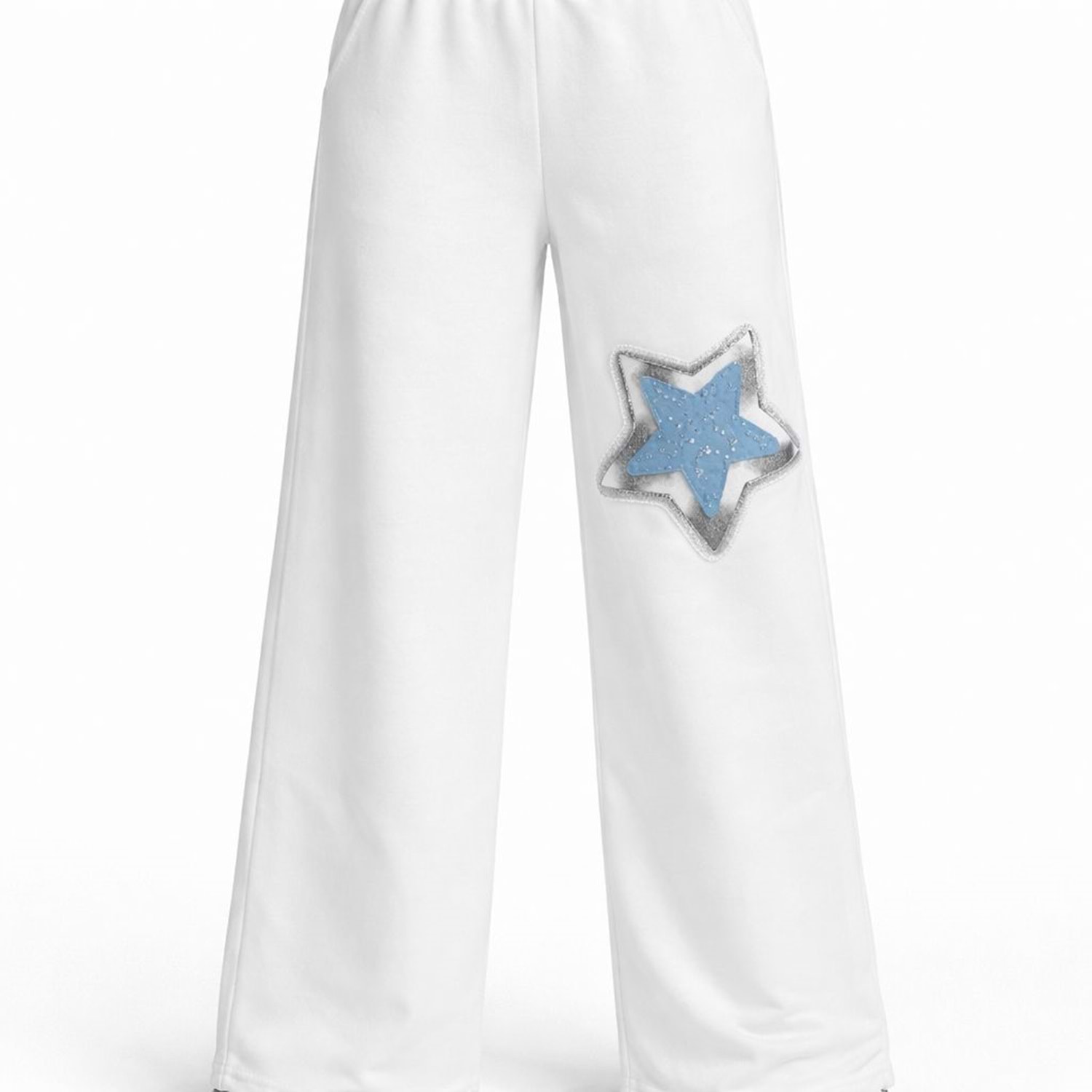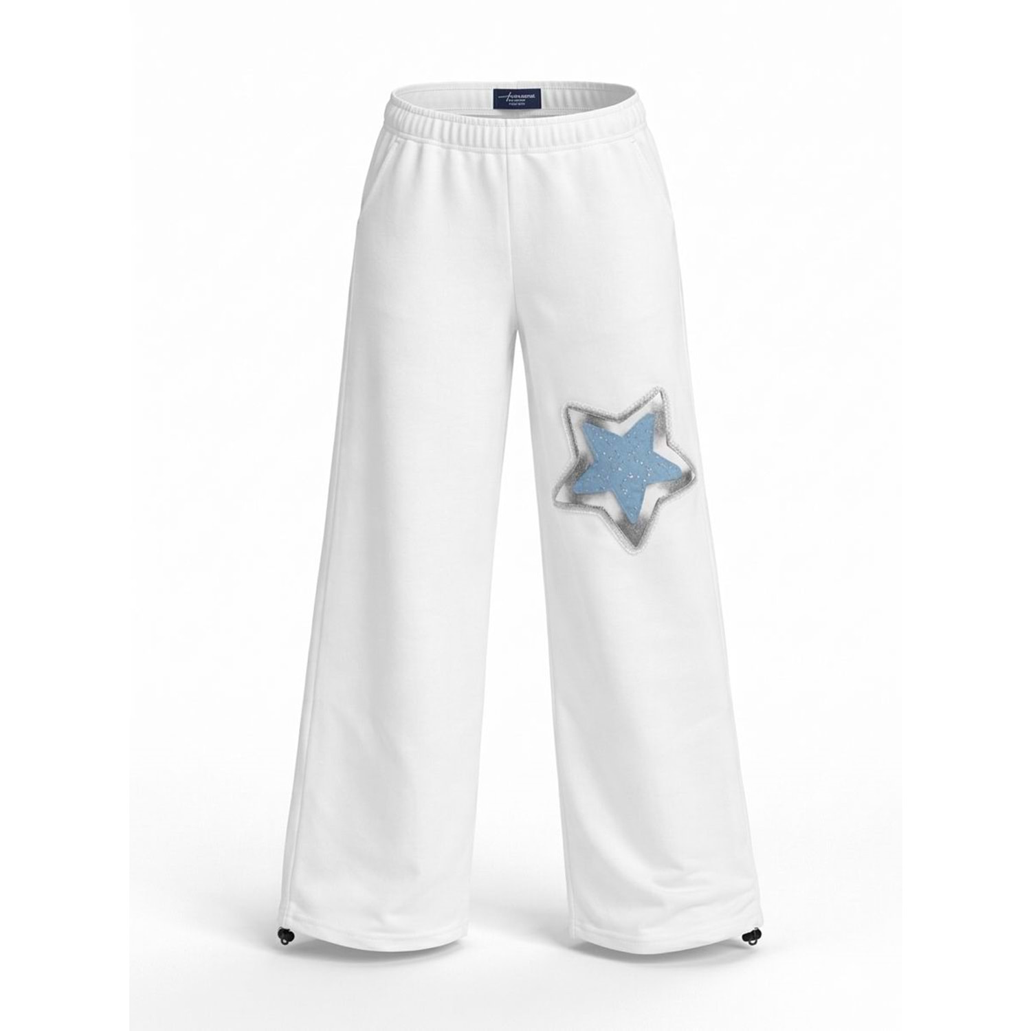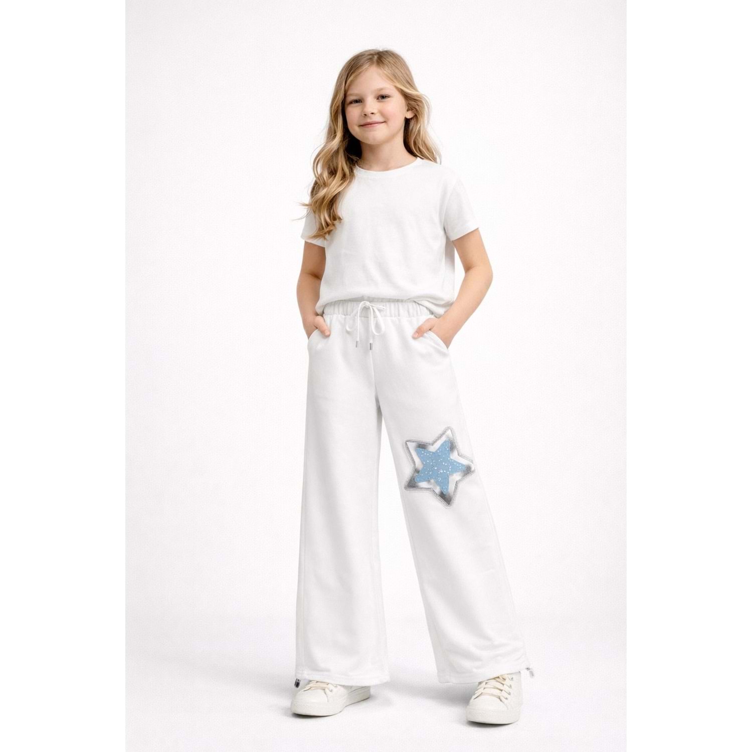 Yıldız Aplikeli Kız Çocuk Geniş Paça Eşofman Altı - BEYAZ - 10 YAŞ
