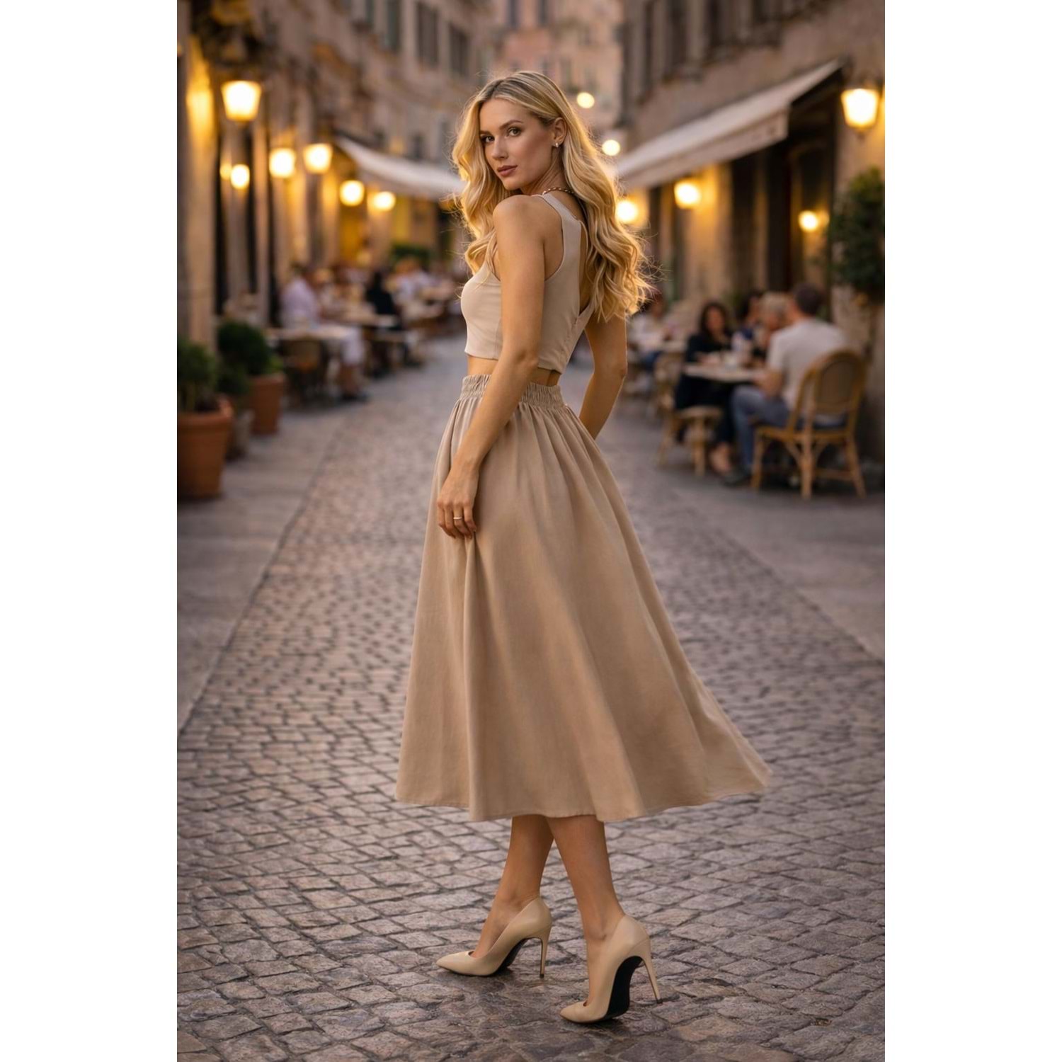 Premium Bel Tastikli Midi Boy Etek - Avrupa Sokak Stili - Taş
