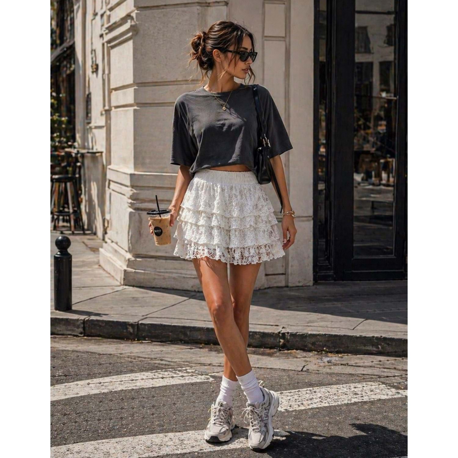 Daily Chic İç Şort Astarlı Katlı Hareketli Mini Etek Ekru - BEYAZ - L - ST01119-BEYAZ-L