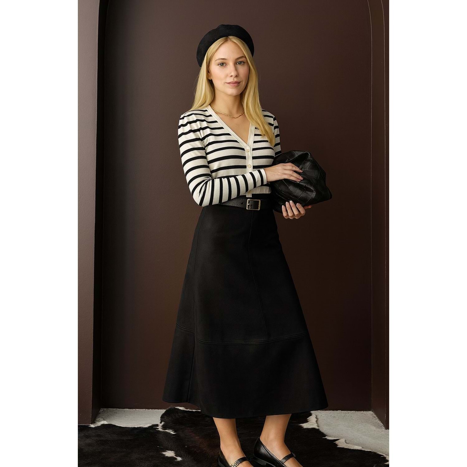 Güderi Siyah Renk Uzun Etek - SİYAH - L - ST00507-SİYAH-L