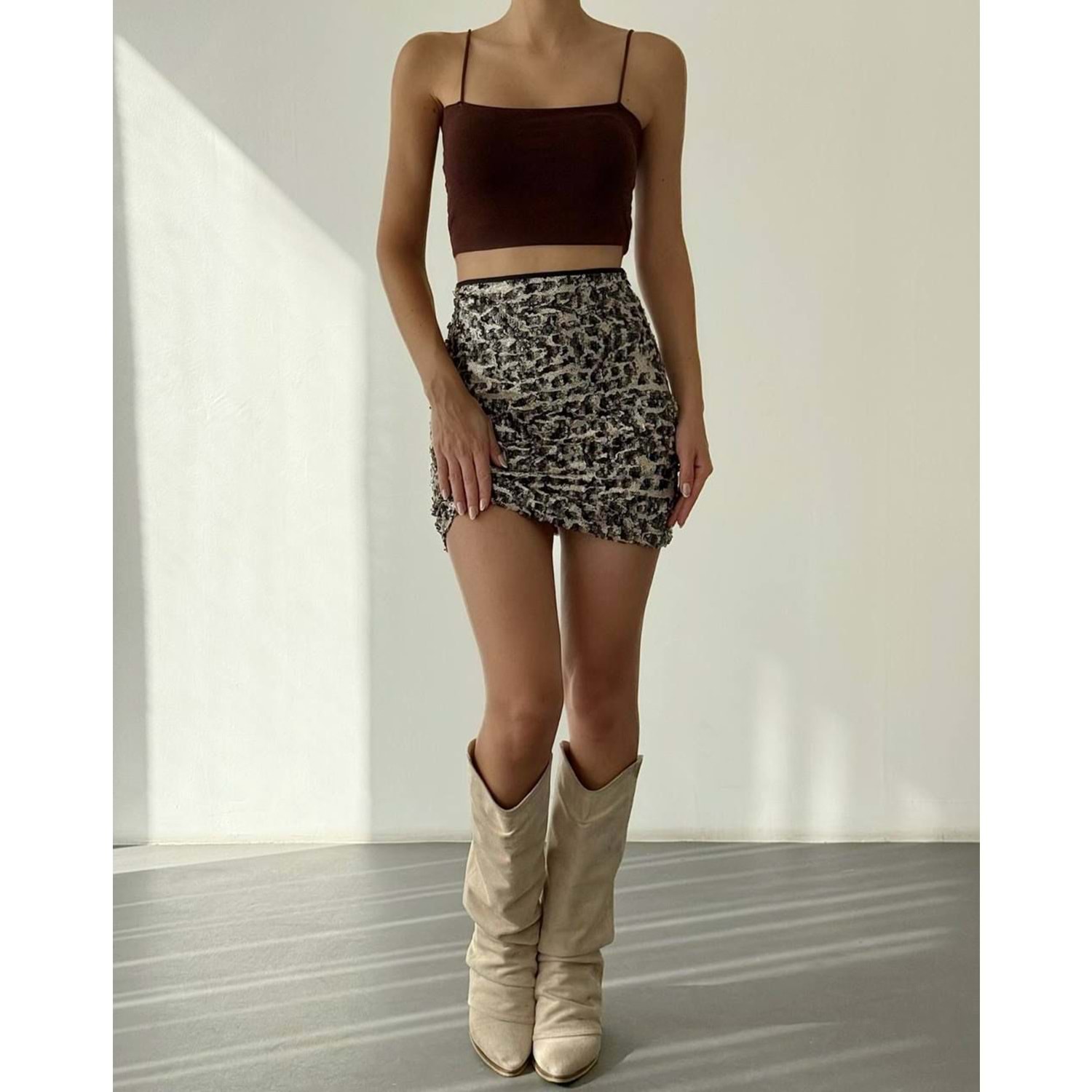 Payetli Mini Leopar Desen Kahve Tonlu Etek - KAHVERENGİ - M - ST00503-KAHVERENGİ-M