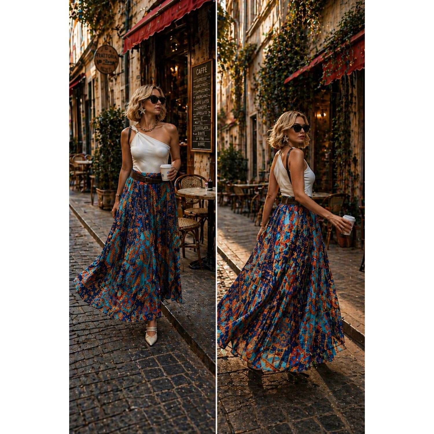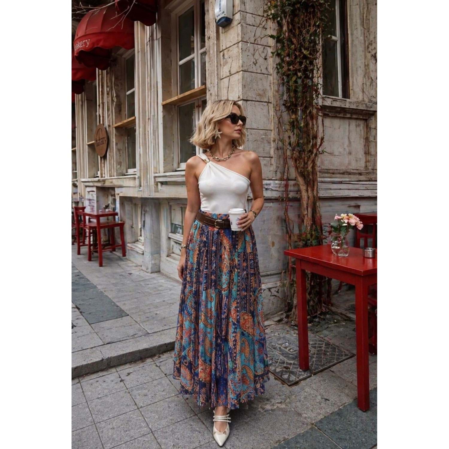 Sienna Power Look Etnik Desen Maxi Etek Kemer Detaylı - MAVİ - L - ST01195-MAVİ-L