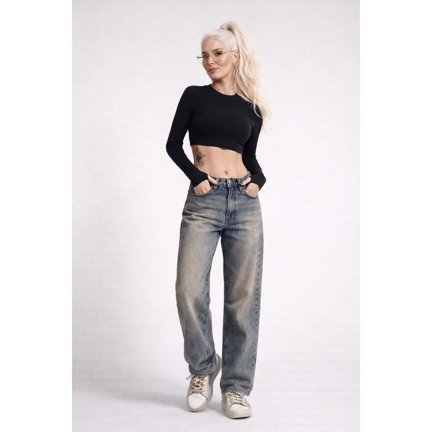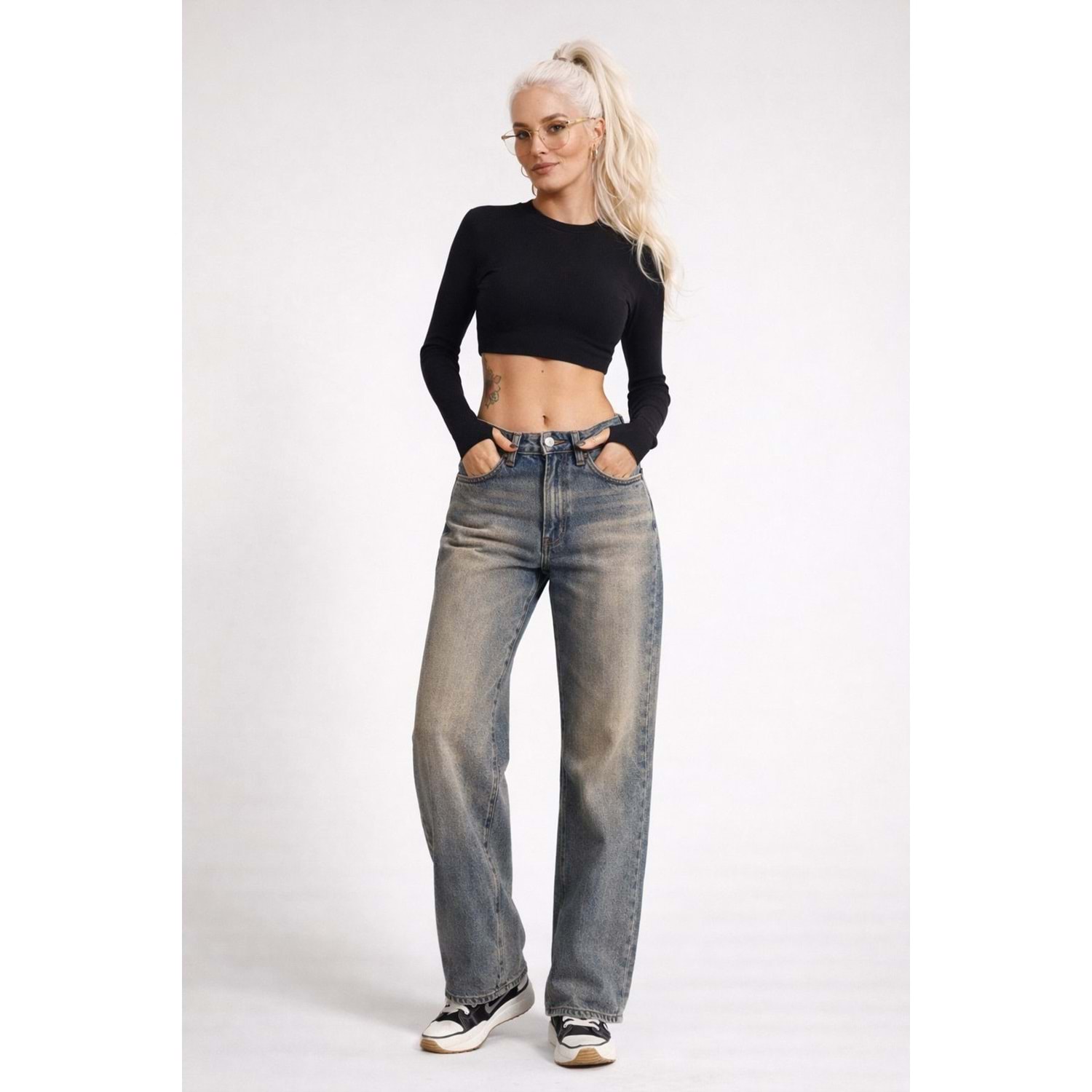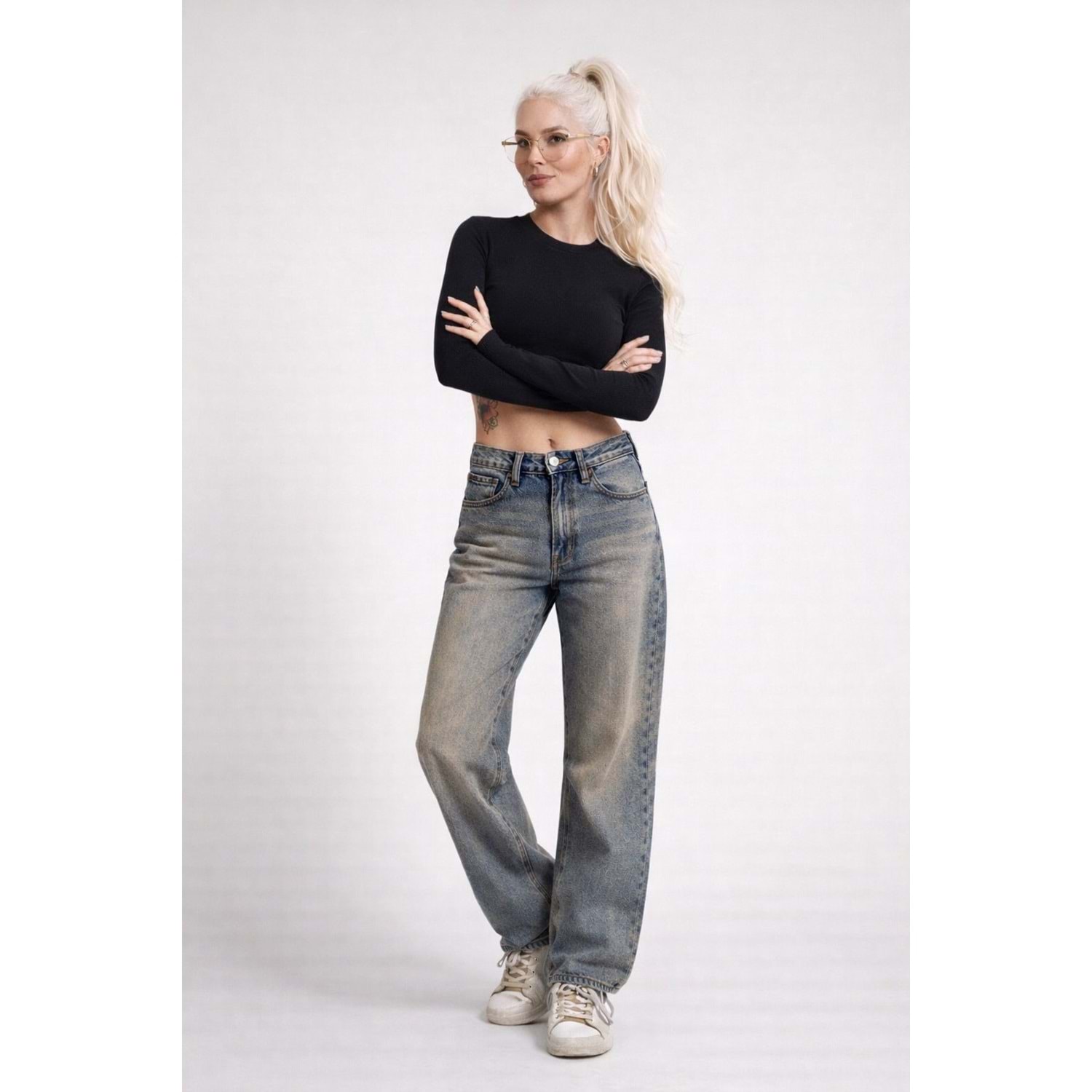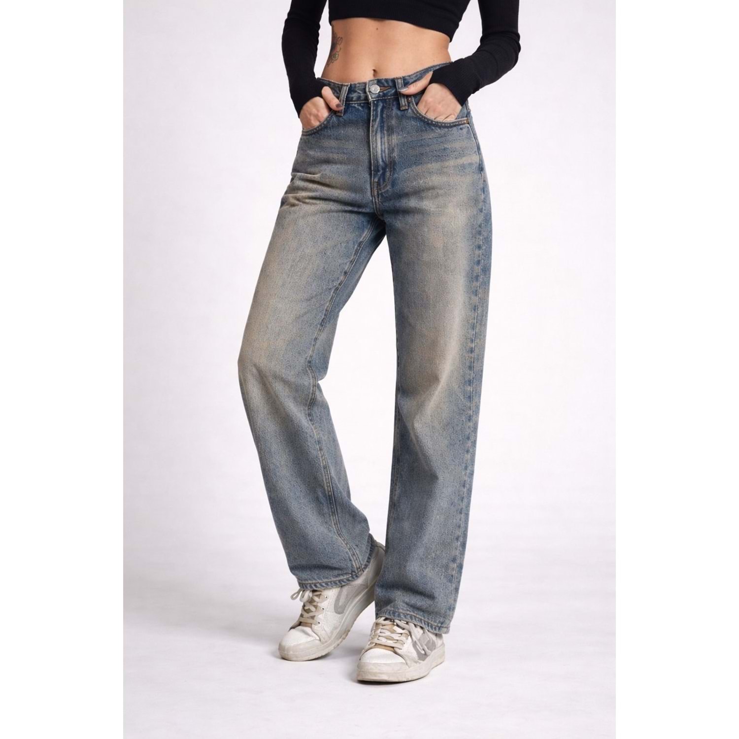 Eskitme Yıkamalı Straight Denim / Kot Pantolon - MAVİ - 34