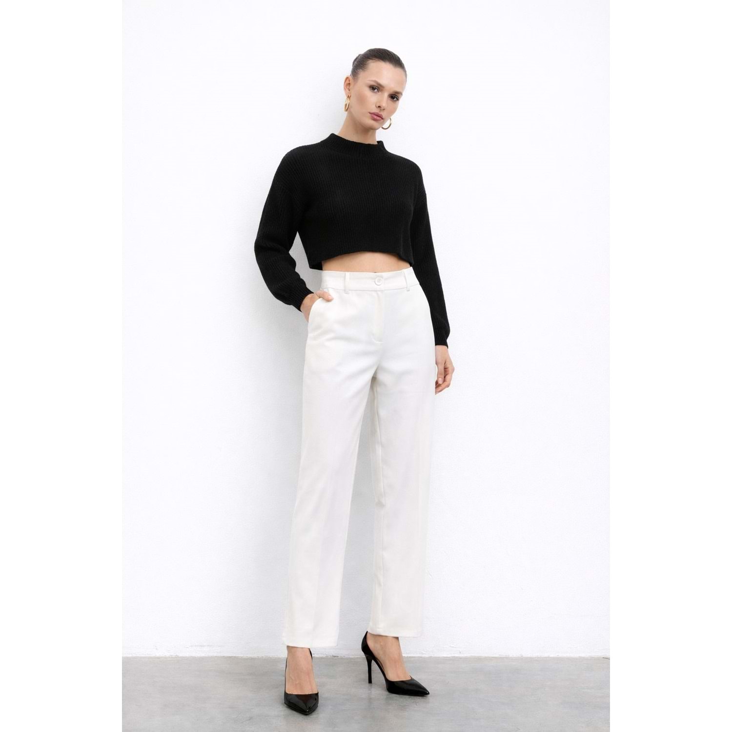 Ekru Renk İspanyol Paça Pantolon - BEYAZ - L - ST00114-11274