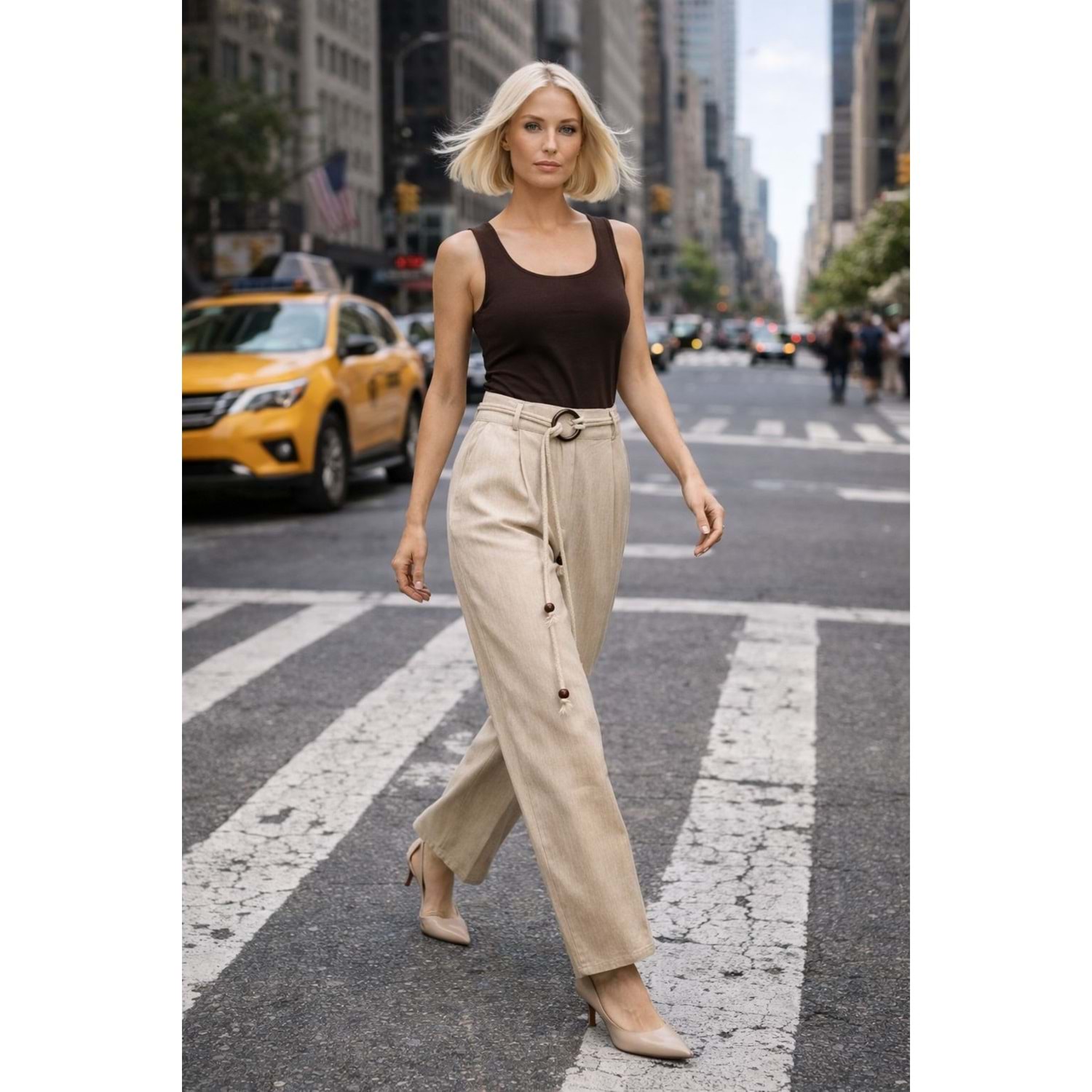 Krem Renk Premium Dökümlü Kesin Yüksek Bel Kemer Detaylı Yüksek Bel - KREM - L