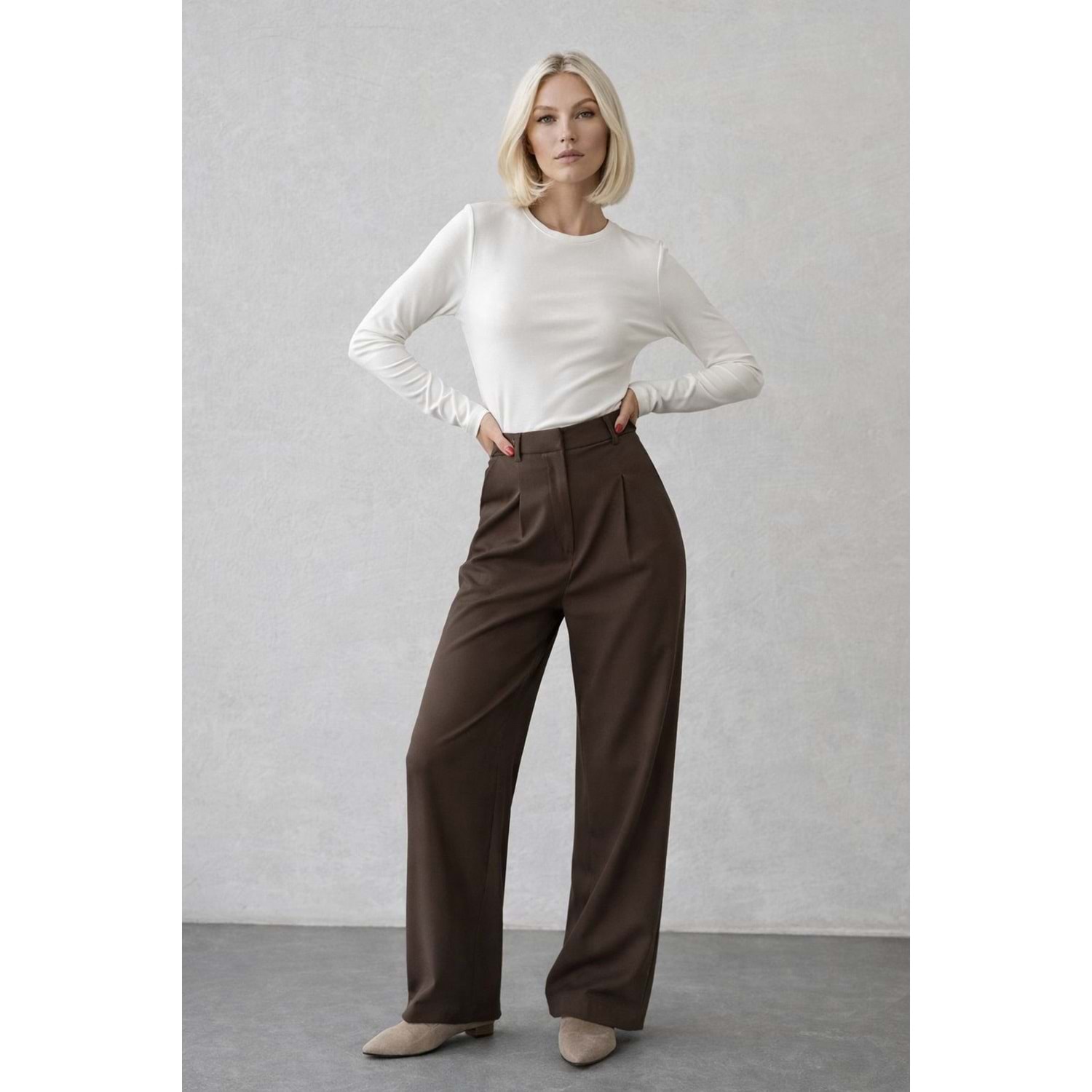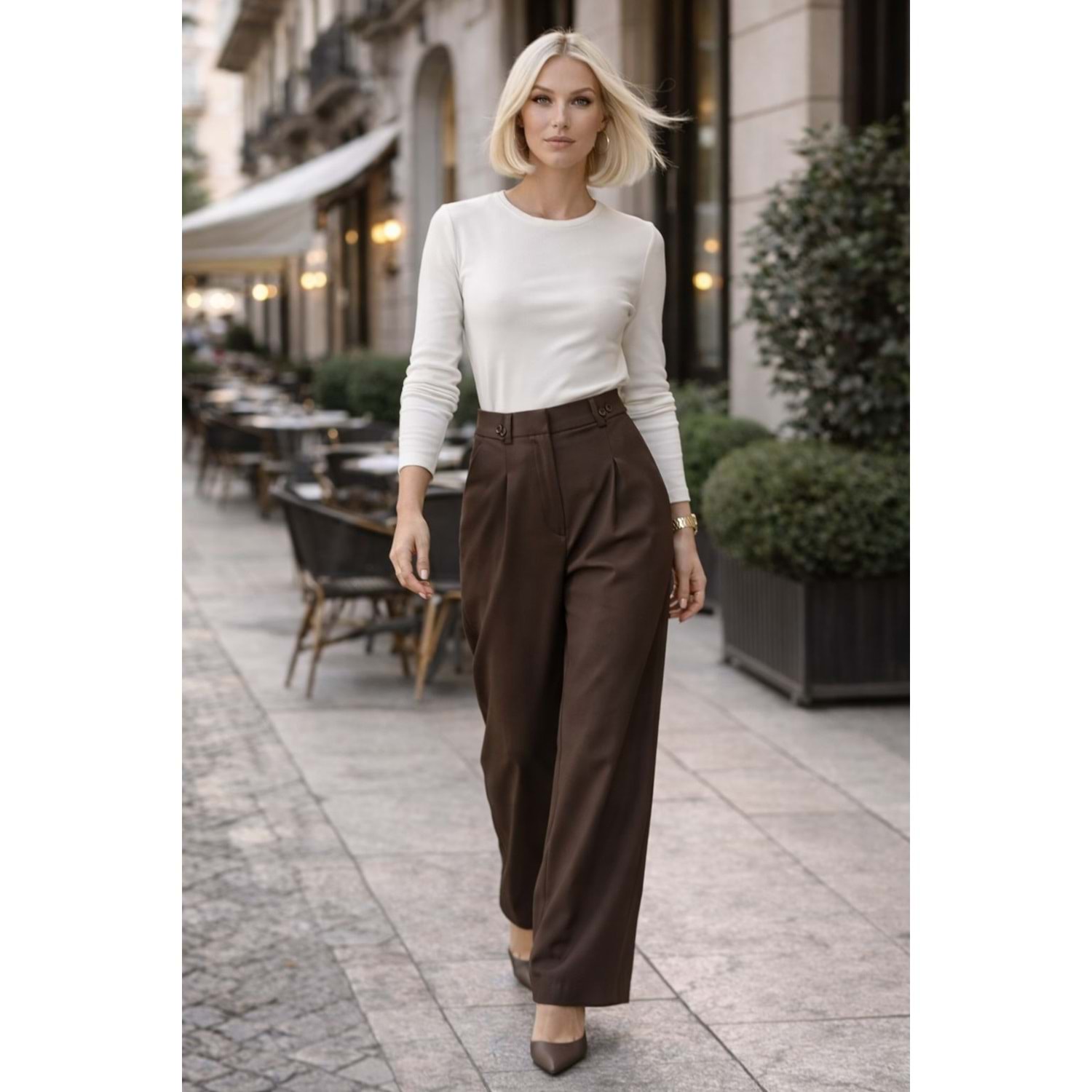 Mocha Signature High Waist Wide Leg Dökümlü Şehir Stili Pantolon - KAHVERENGİ - L