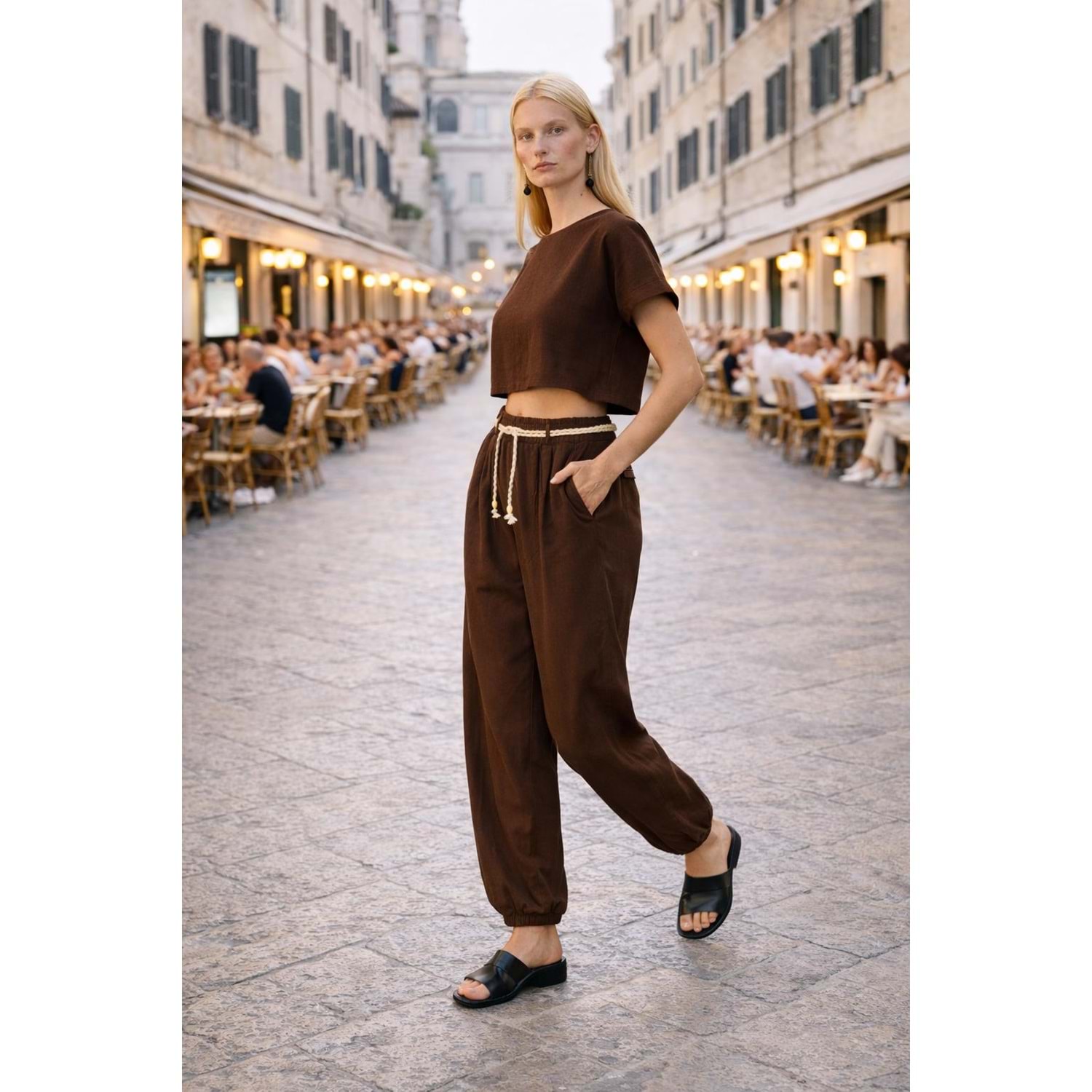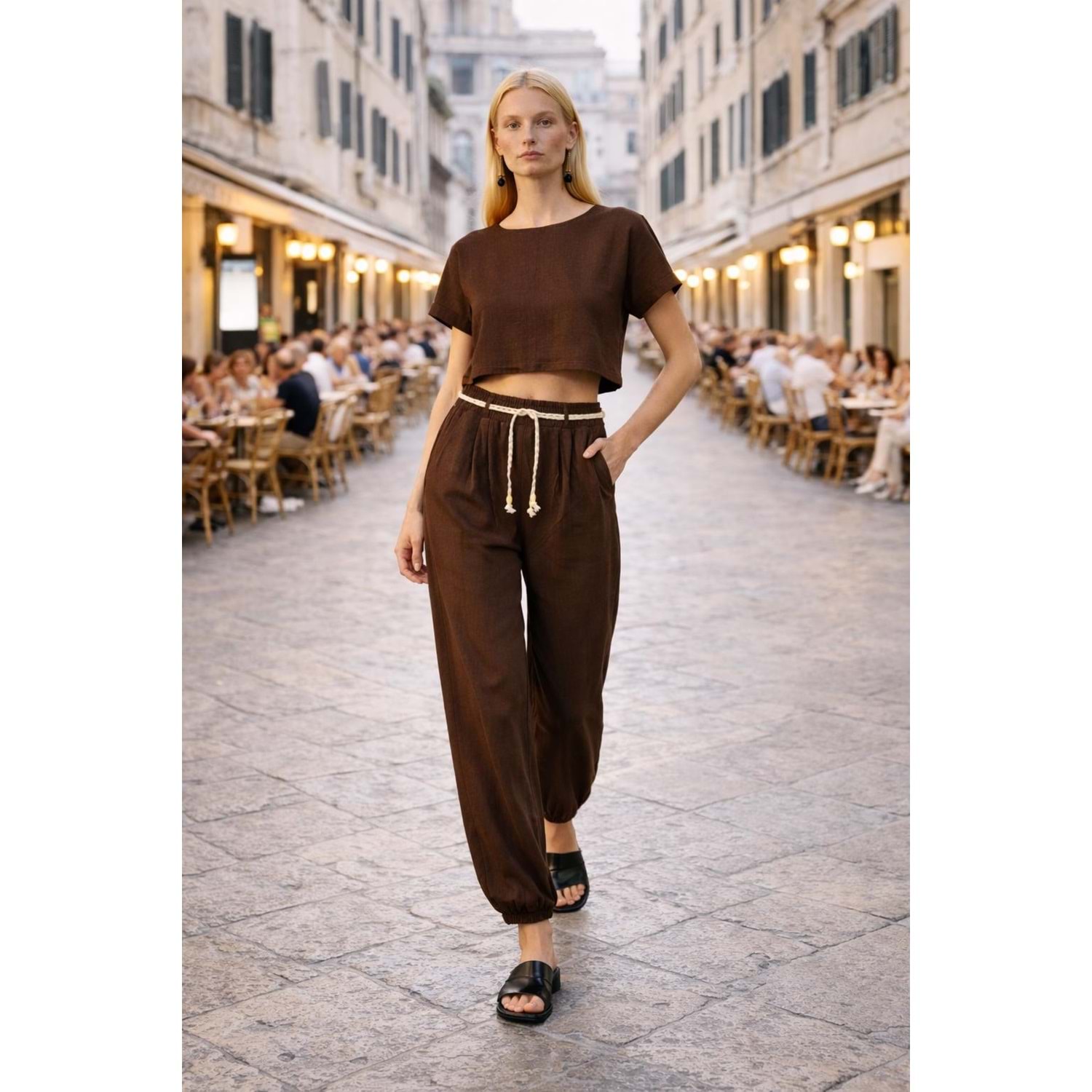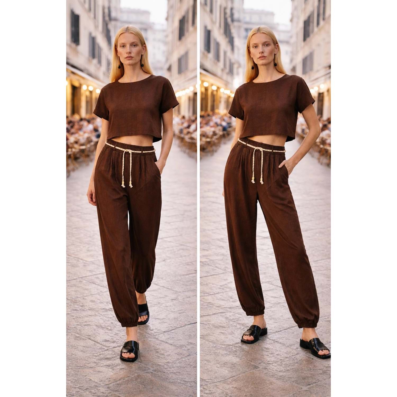 Via Roma Şık Pamuk Viskon Pantolon- Kahve - KAHVERENGİ - L