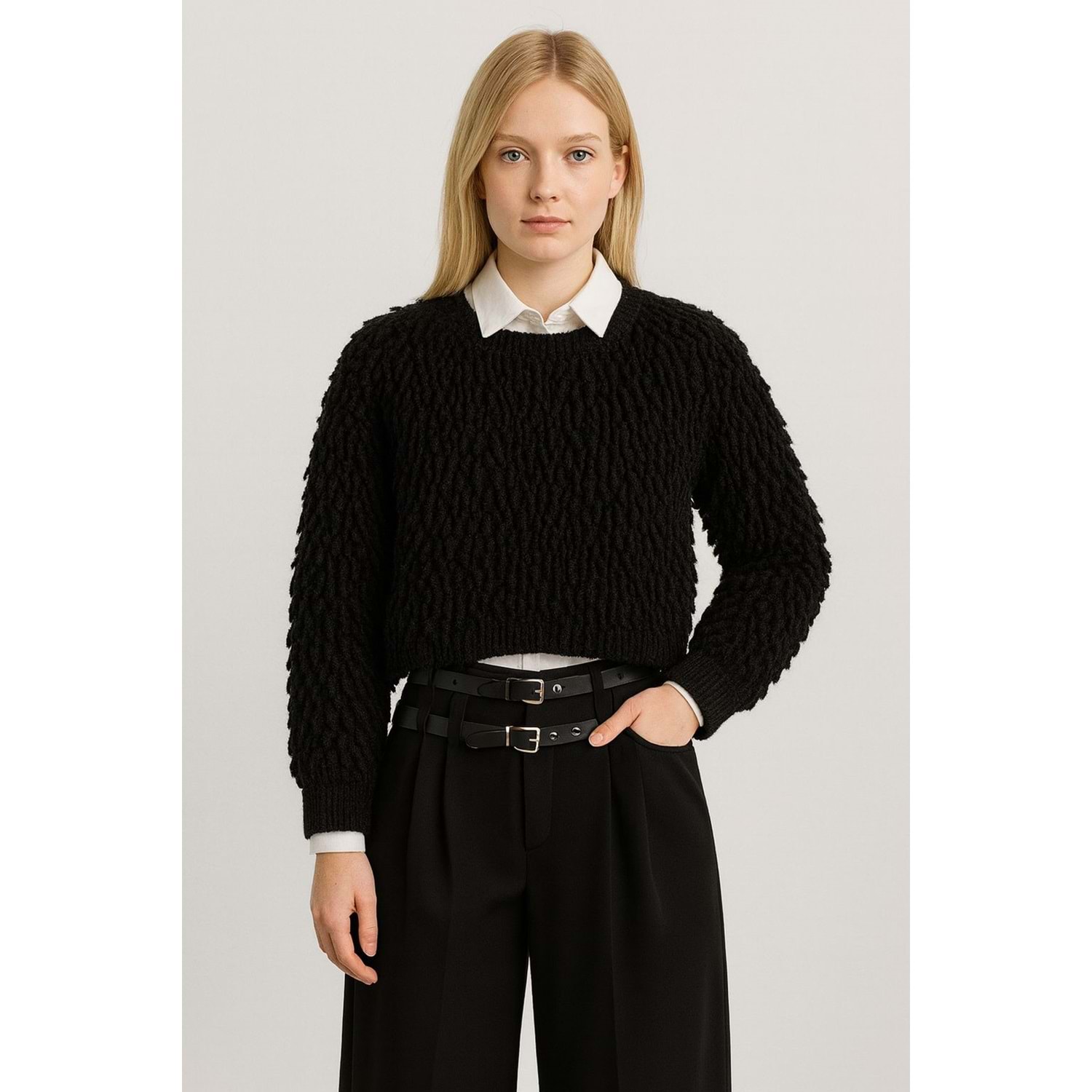 Yüksek Bel Kemerli Palazzo Pantolon Siyah Renk