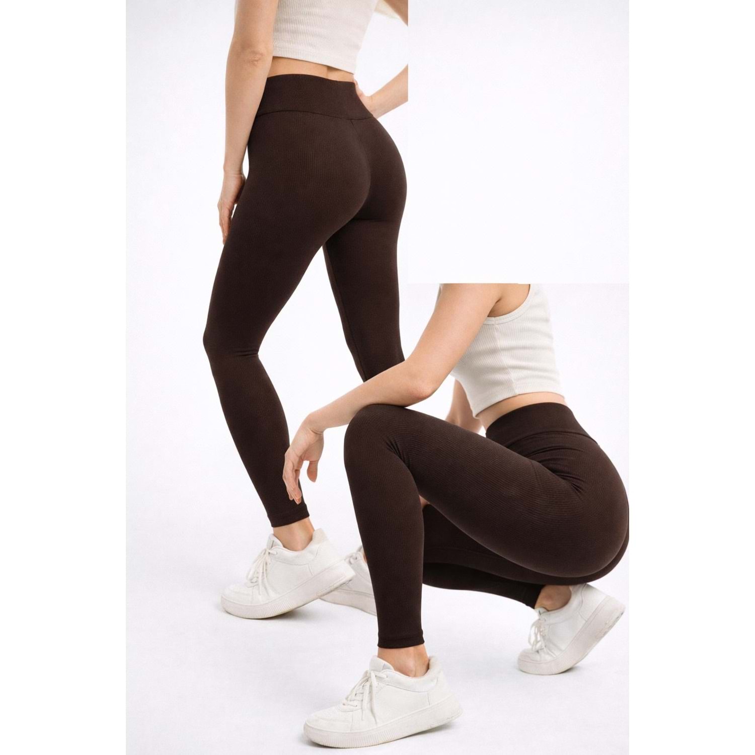 Kadın Tayt Karşorse Koyu Kahverengi Şardonlu - Premium Kumaş - L