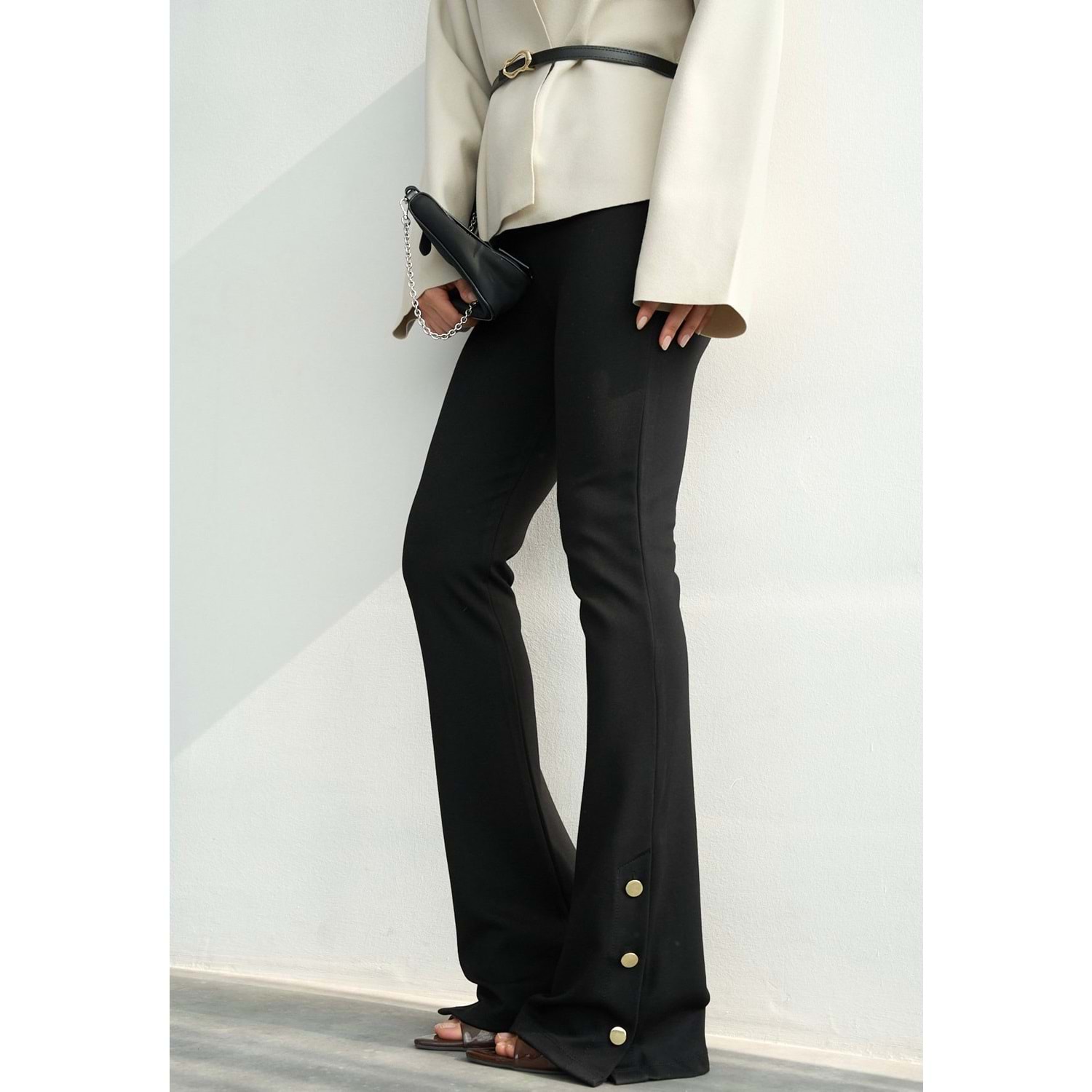 Paça Çıtçıt Düğme Detay İspanyol Paça Tayt