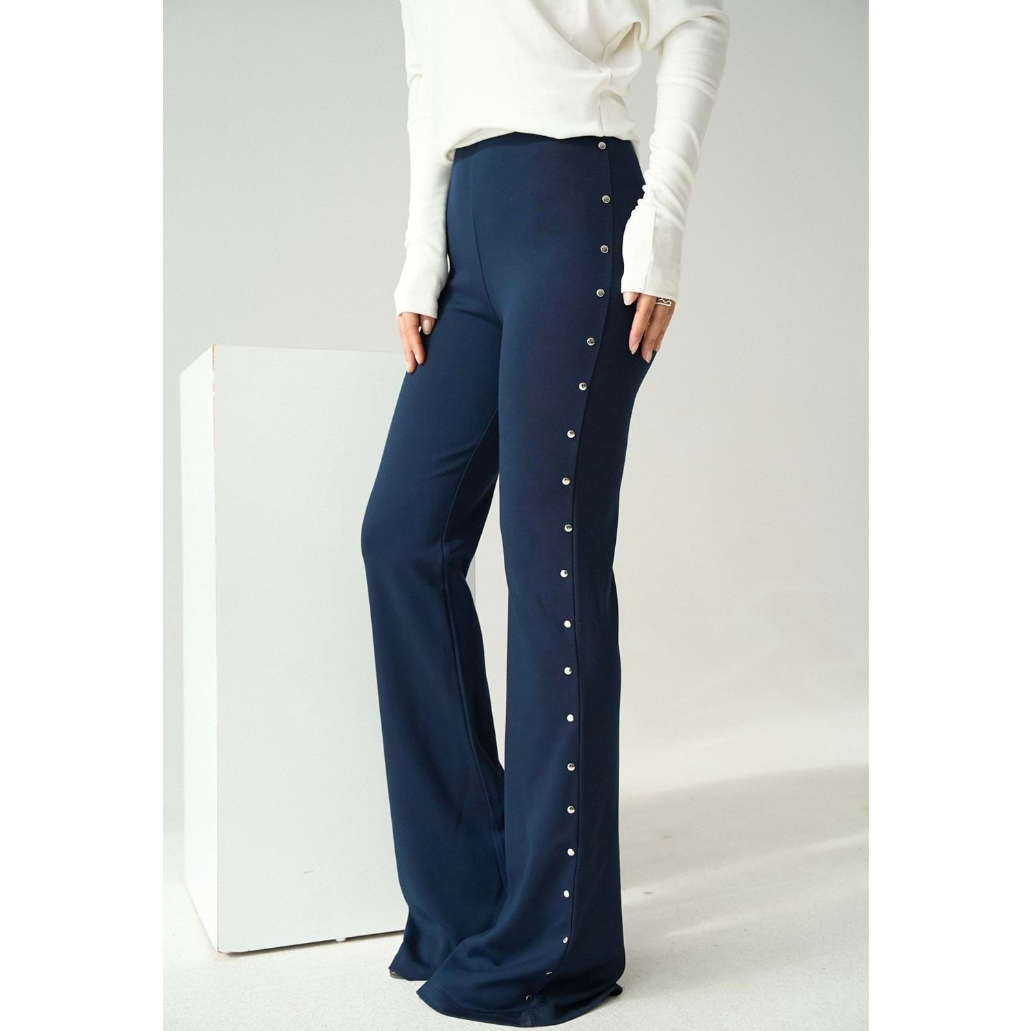 Yan Zımbalı Tasarım Ispanyol Paça Tayt - Lacivert - LACİVERT - L - ST00681-LACİVERT-L