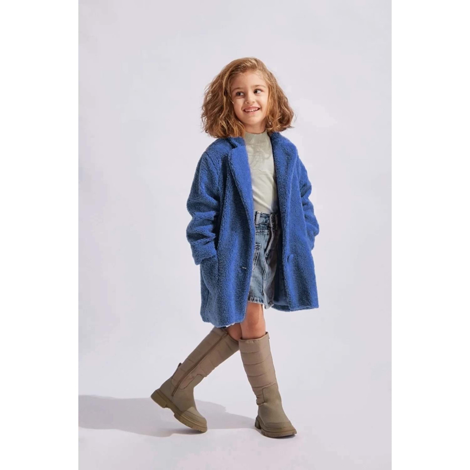 Kız Çocuk Yeni Sezon Trend Peluş Kürk Kaban Düğme Kapamalı Saten İç Astarlı