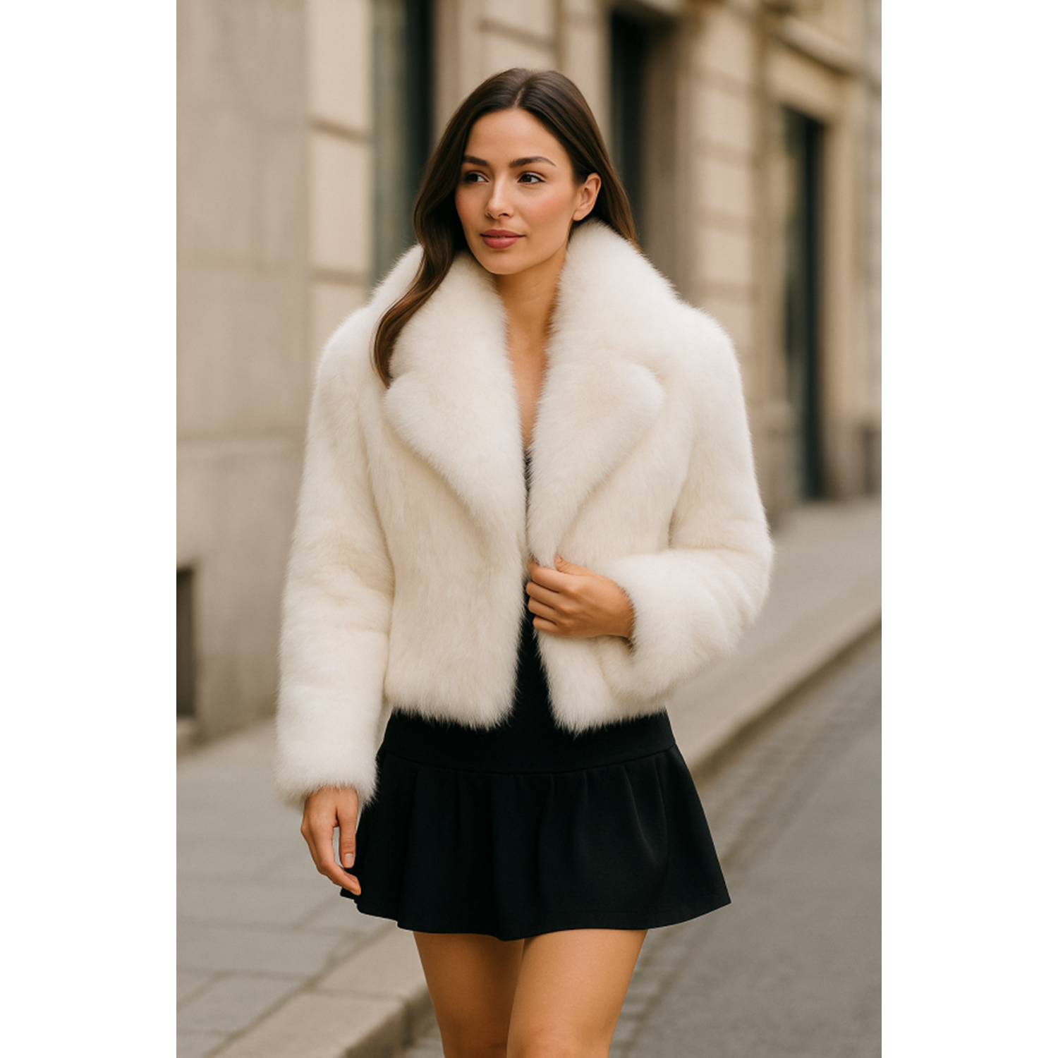 Kadın Yeni Sezon Astarlı Beyaz Renk Suni Kürk Ceket – Şık ve Zarif Kış Stili