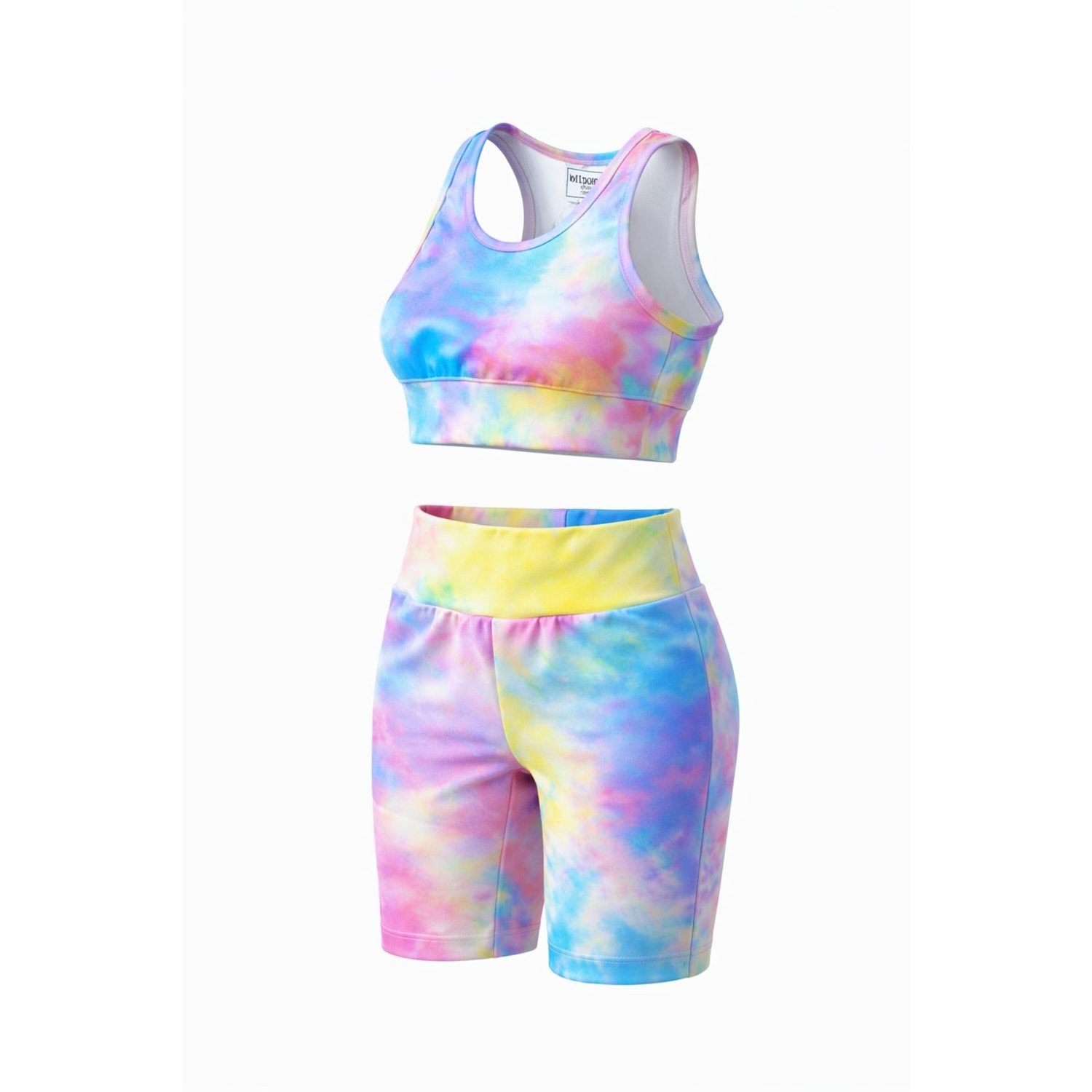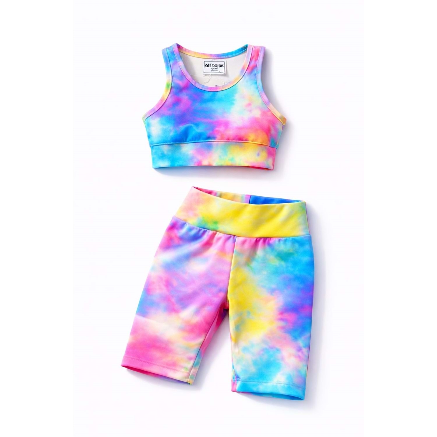 Yeni Sezon Kız Çocuk Çok Renkli Crop Üst Kısa Tayt 2 li Alt Üst Takım