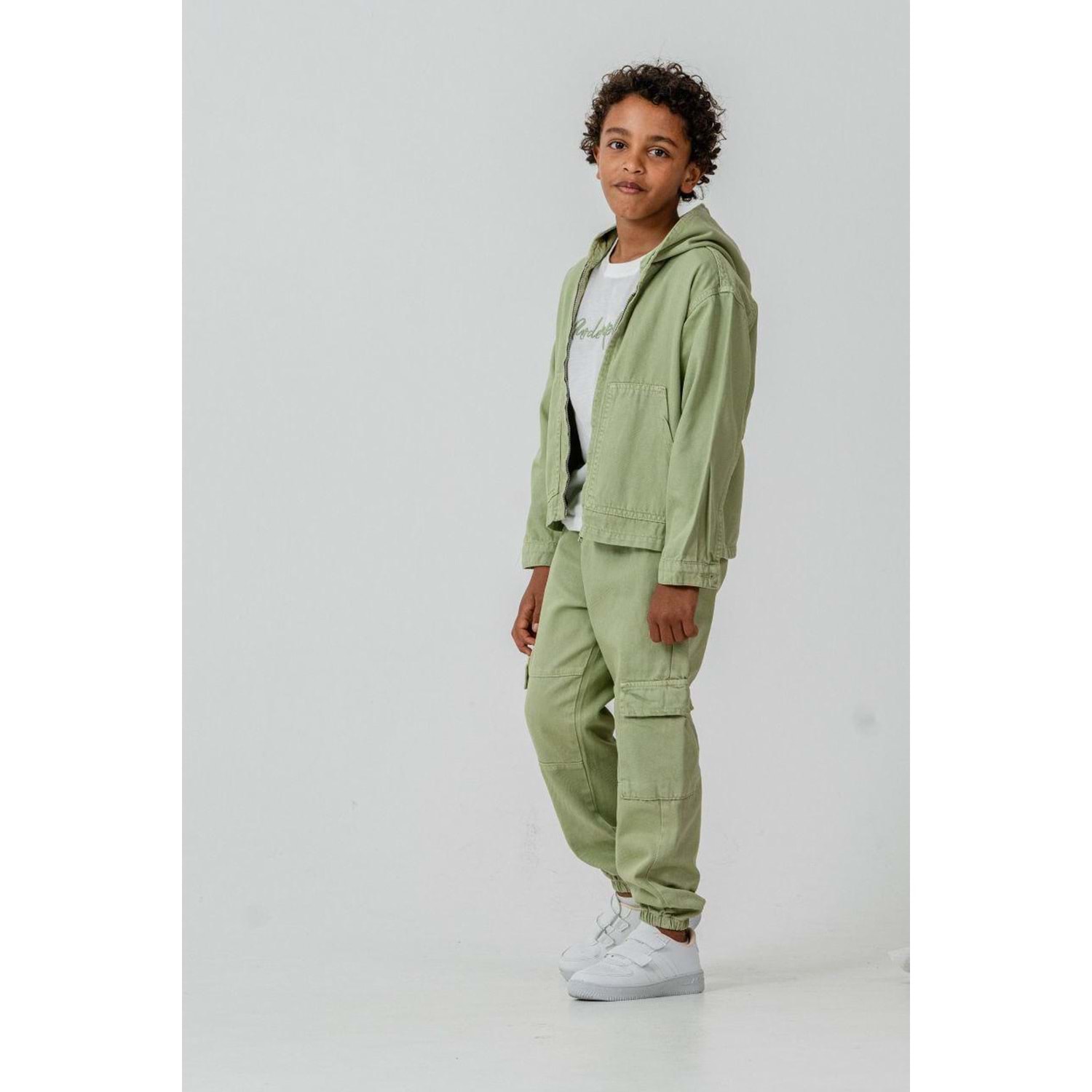 Erkek Çocuk Yeşil Renk Kargo Cepli Dokuma 3 Parçalı Pantolon Ceket Takım - 3-4 YAŞ