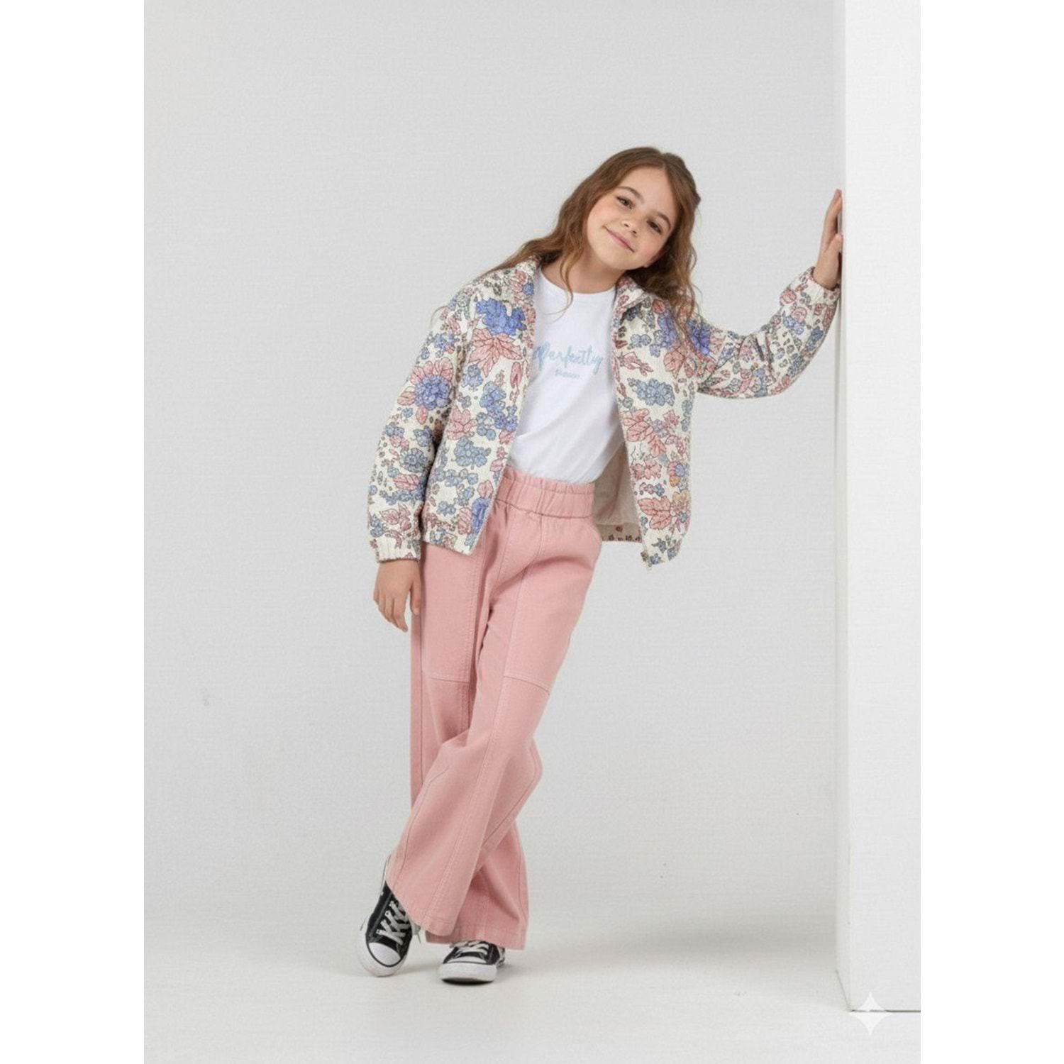 Kız Çocuk Çiçekli Dokuma Ceketli 3 Parça Alt Üst Takım - 4-5 YAŞ