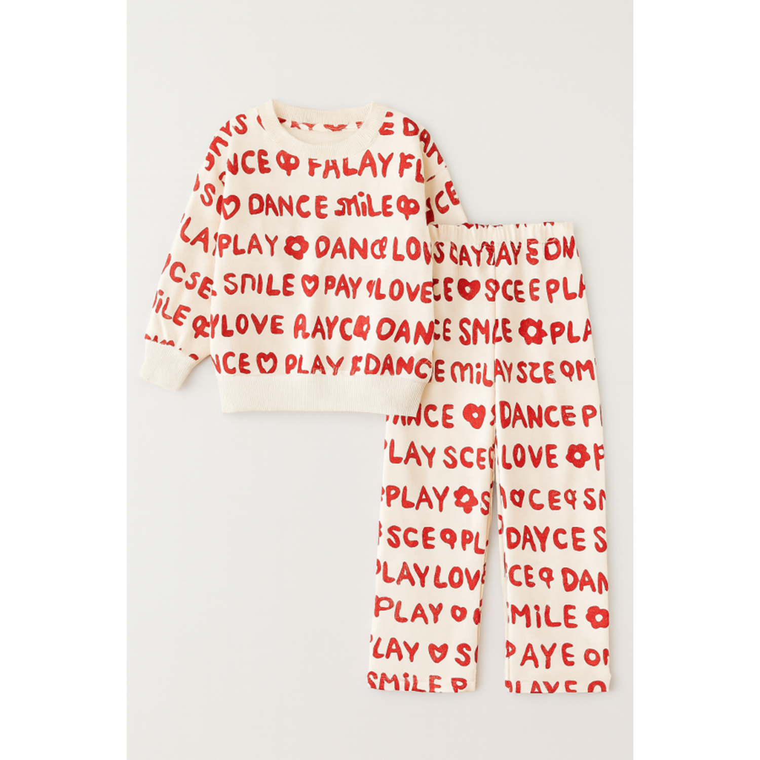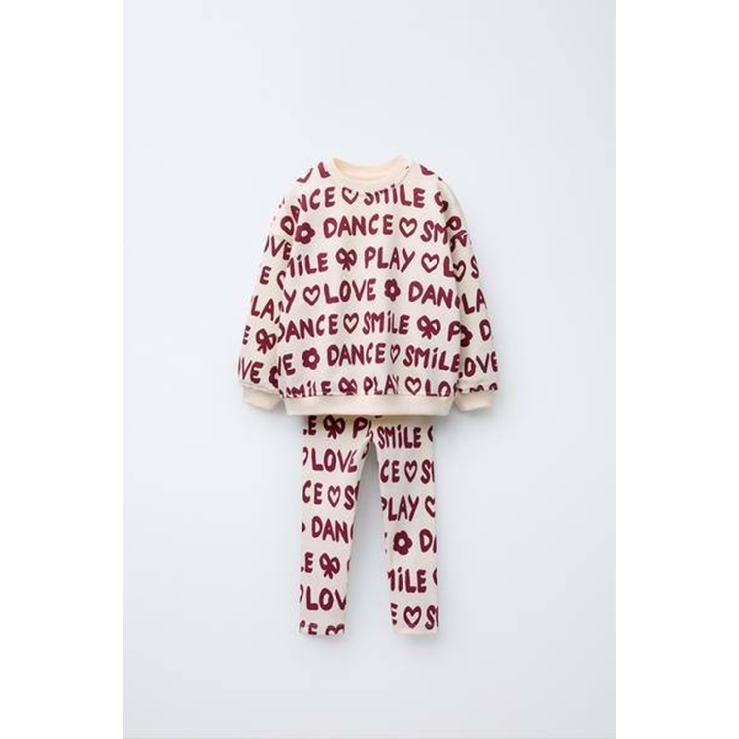 Kız Çocuk Love Slogan Yazı Detaylı Alt üst Takım 3 İplik