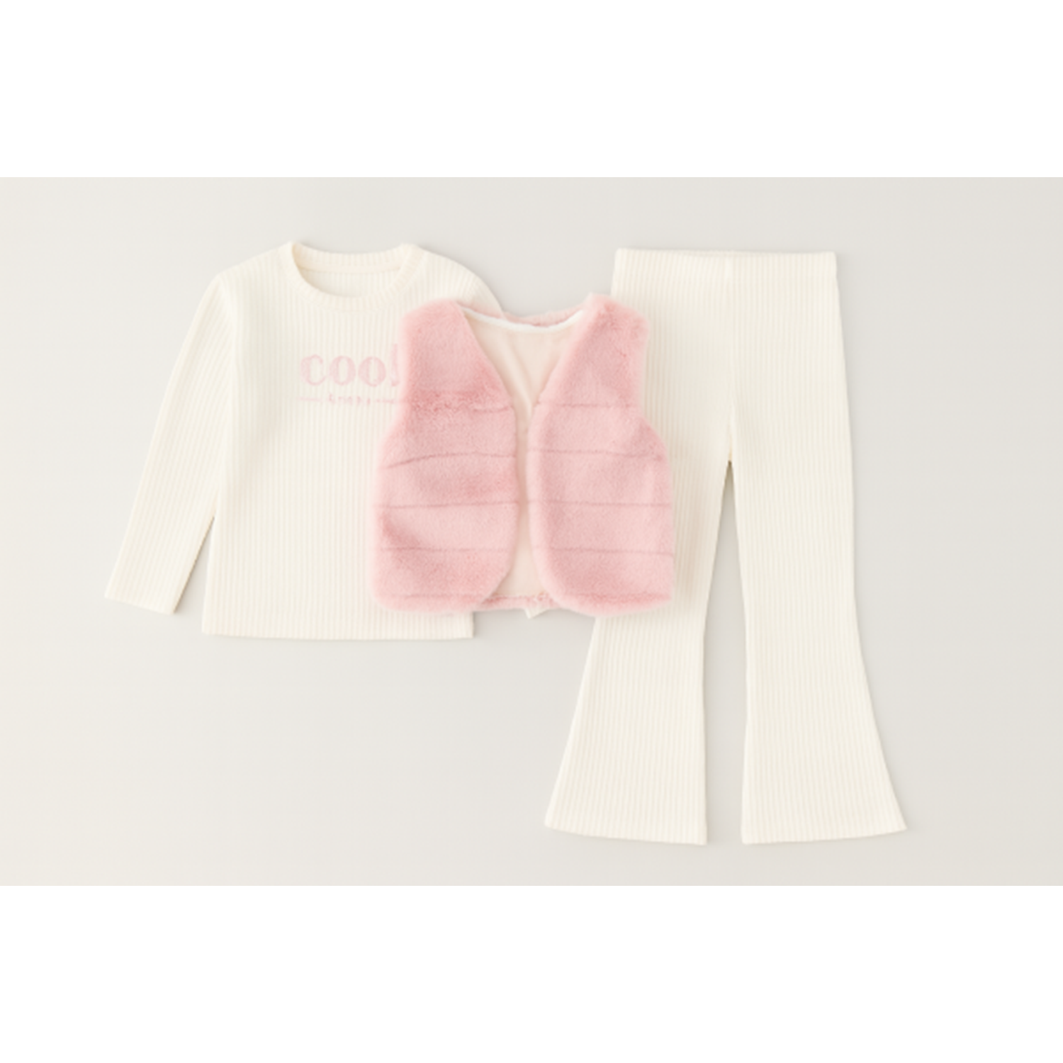 Kız Çocuk Pembe Renk Peluş Yelekli 3 Parça Alt Üt Takım