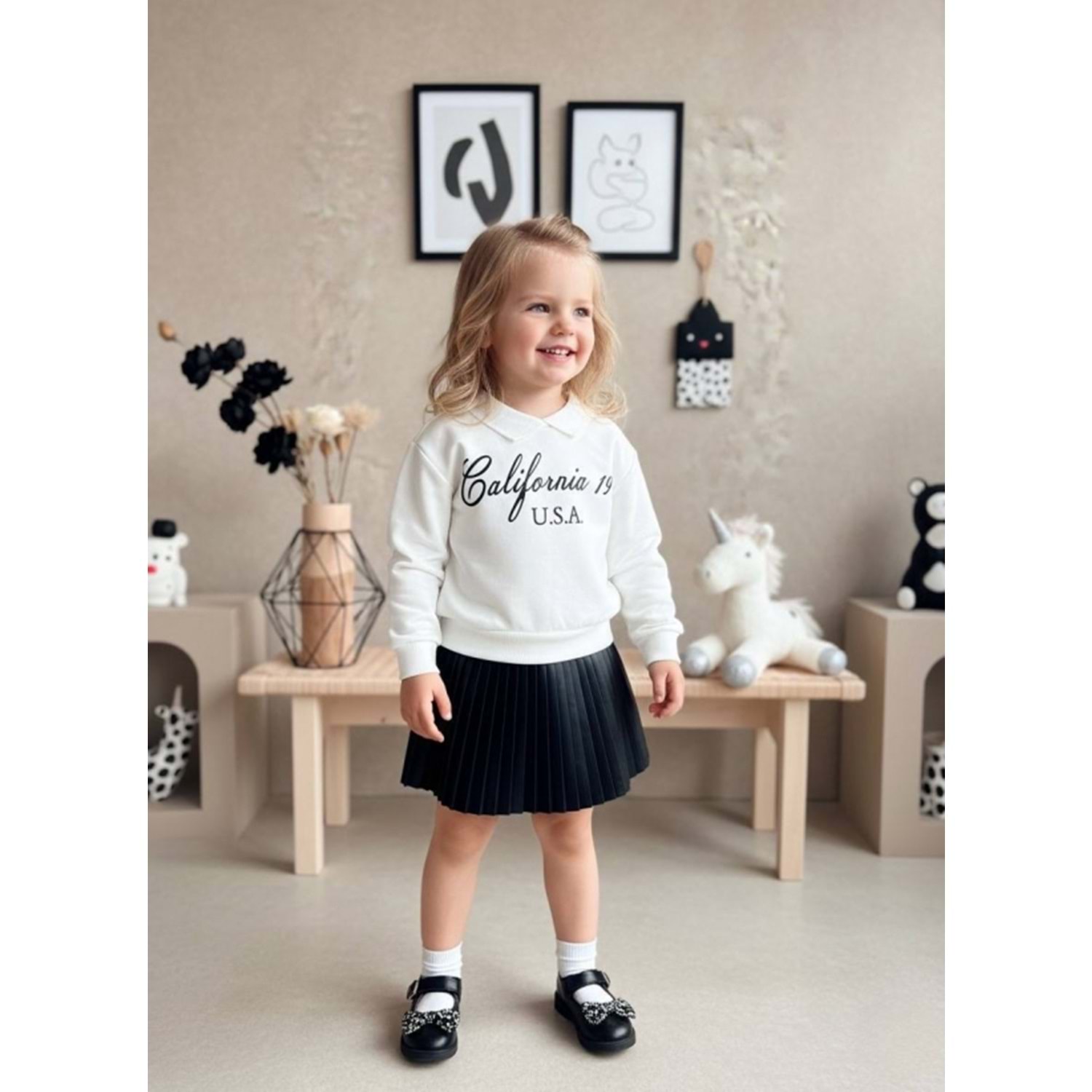Kız Çocuk Polo Yaka Sweatshirt - Etek Trend Alt Üst Takım Yeni Sezon