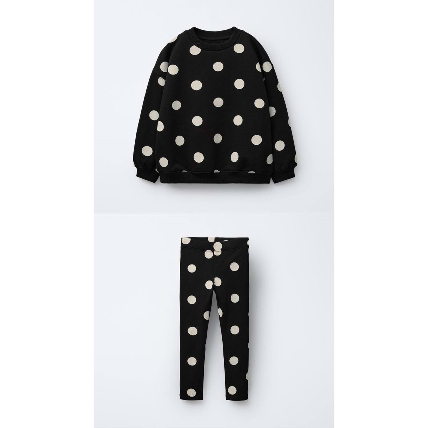 Kız Çocuk Siyah Beyaz Puantiyeli Sweatshirt Tayt Alt Üst Takım Polkadot