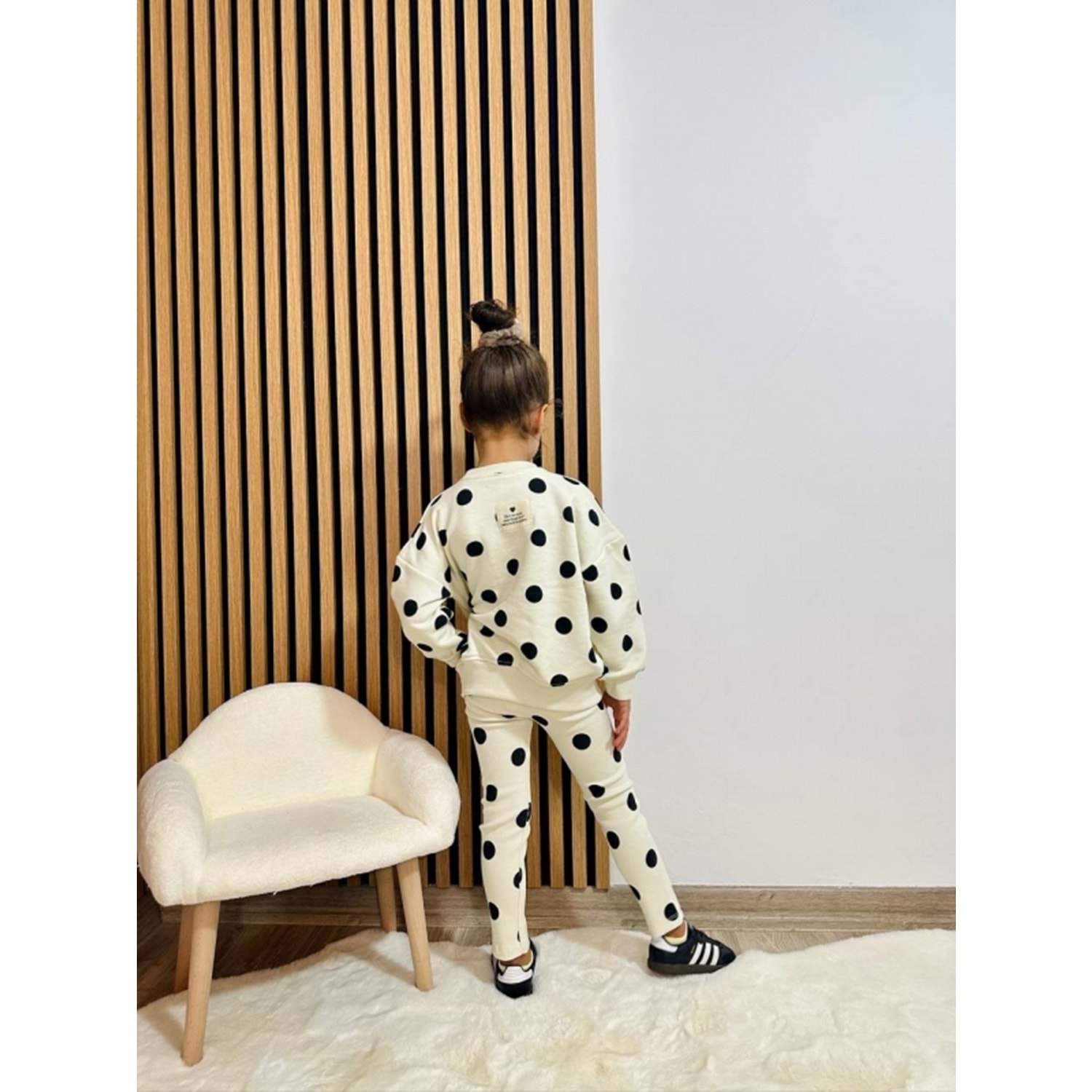 Kız Çocuk Siyah Beyaz Puantiyeli Sweatshirt Tayt Alt Üst Takım Polkadot