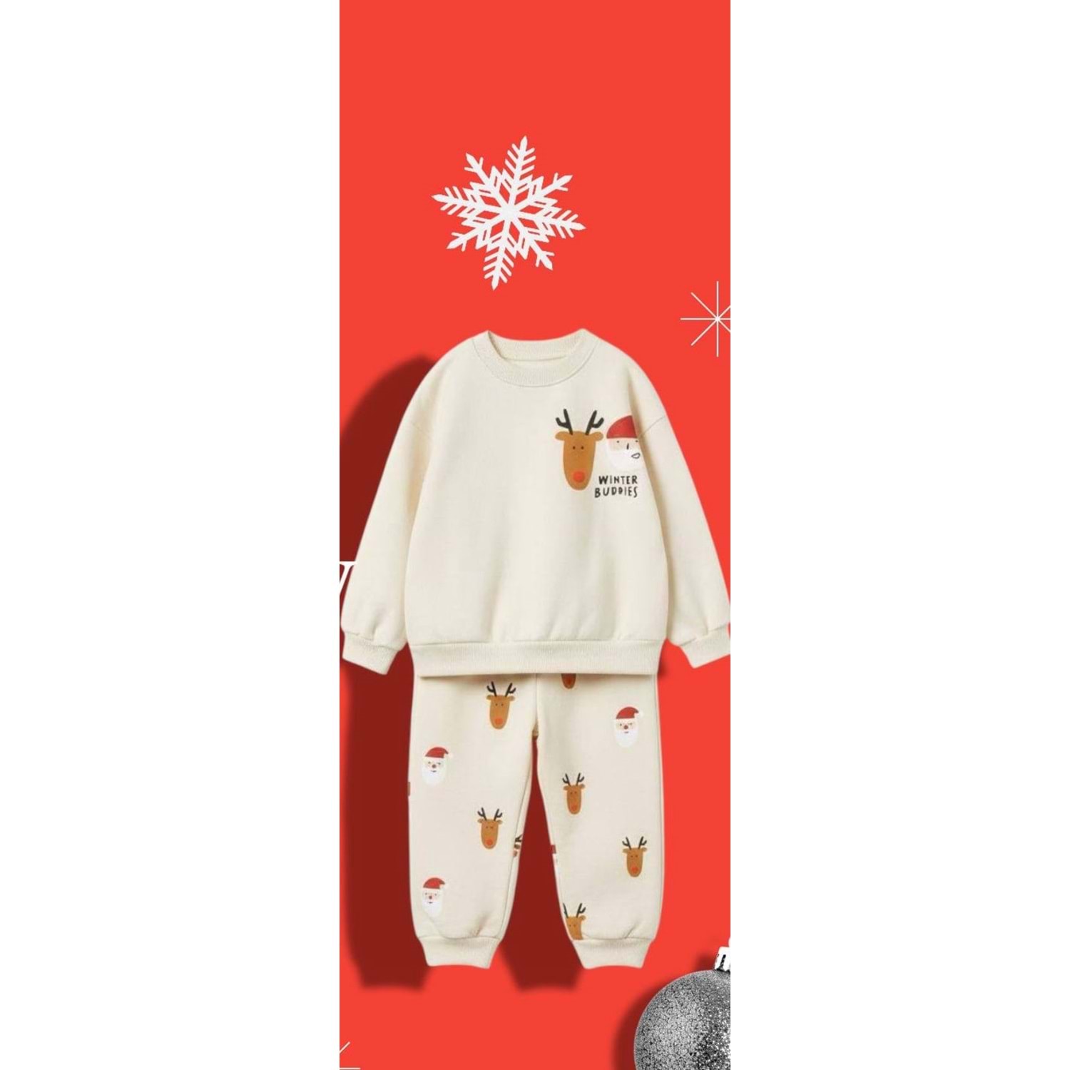 Krem Renk Winter Buddies Baskılı Alt Üst Takım Eşorman - Sweatshirt