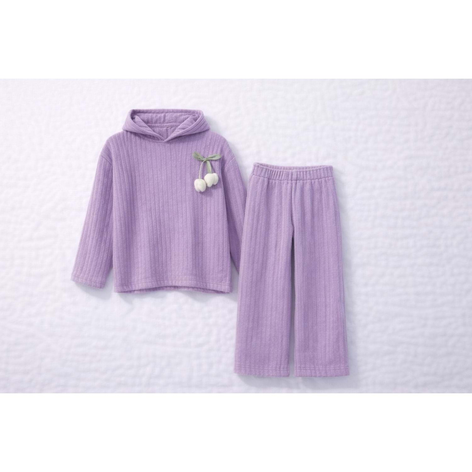 Lila Renk Çiçek Aplikeli Örme Triko Alt Üst Takım - MOR - 7 YAŞ