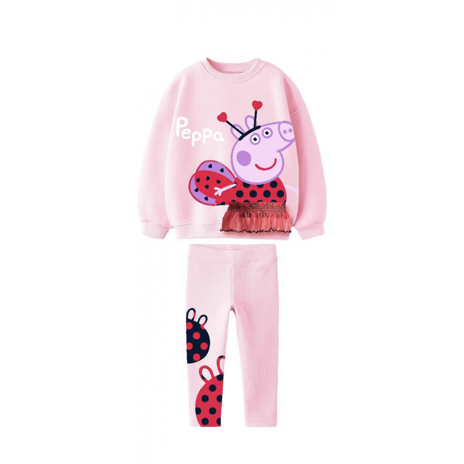 Pembe Renk 3D Etek Kabartma Detaylı Alt-Üst Takım