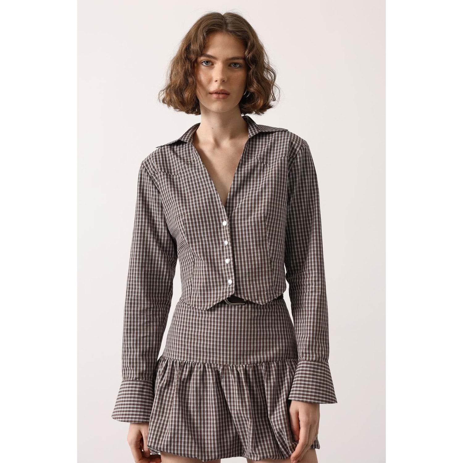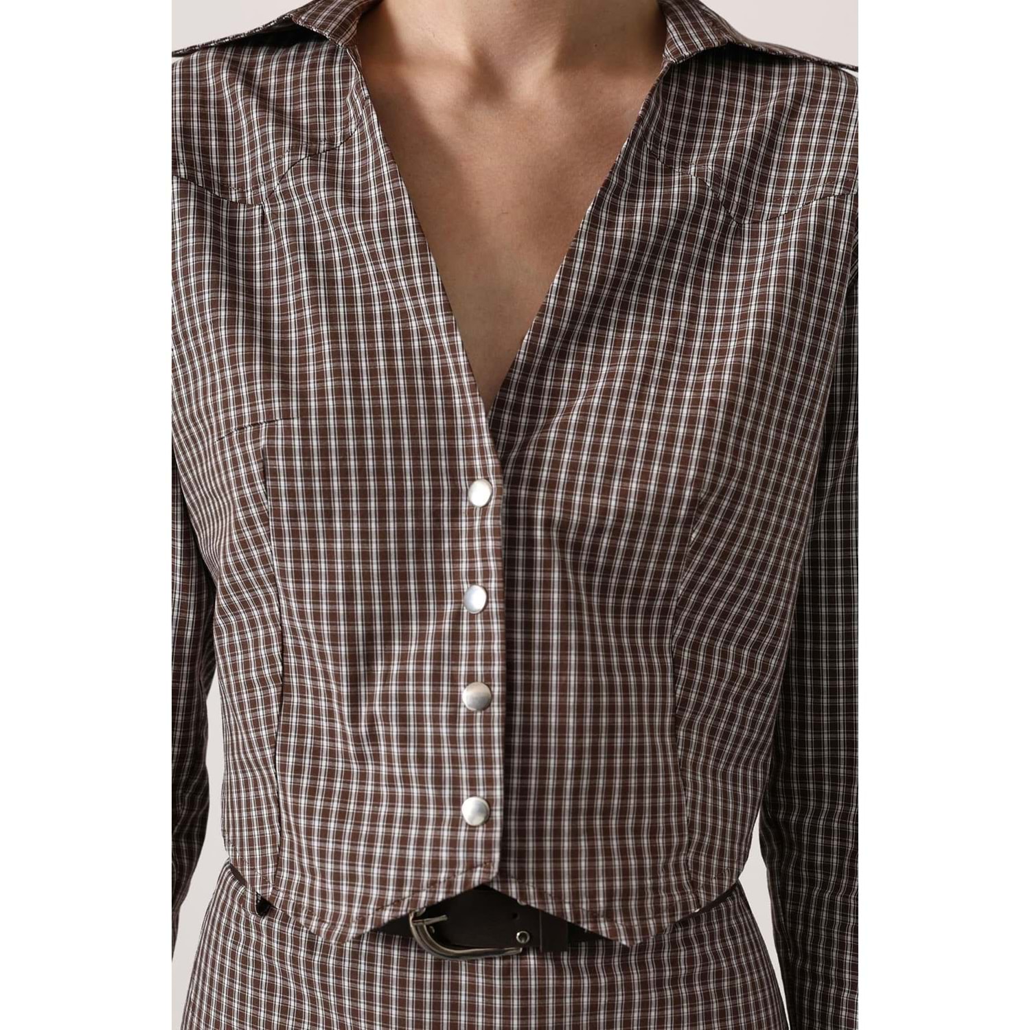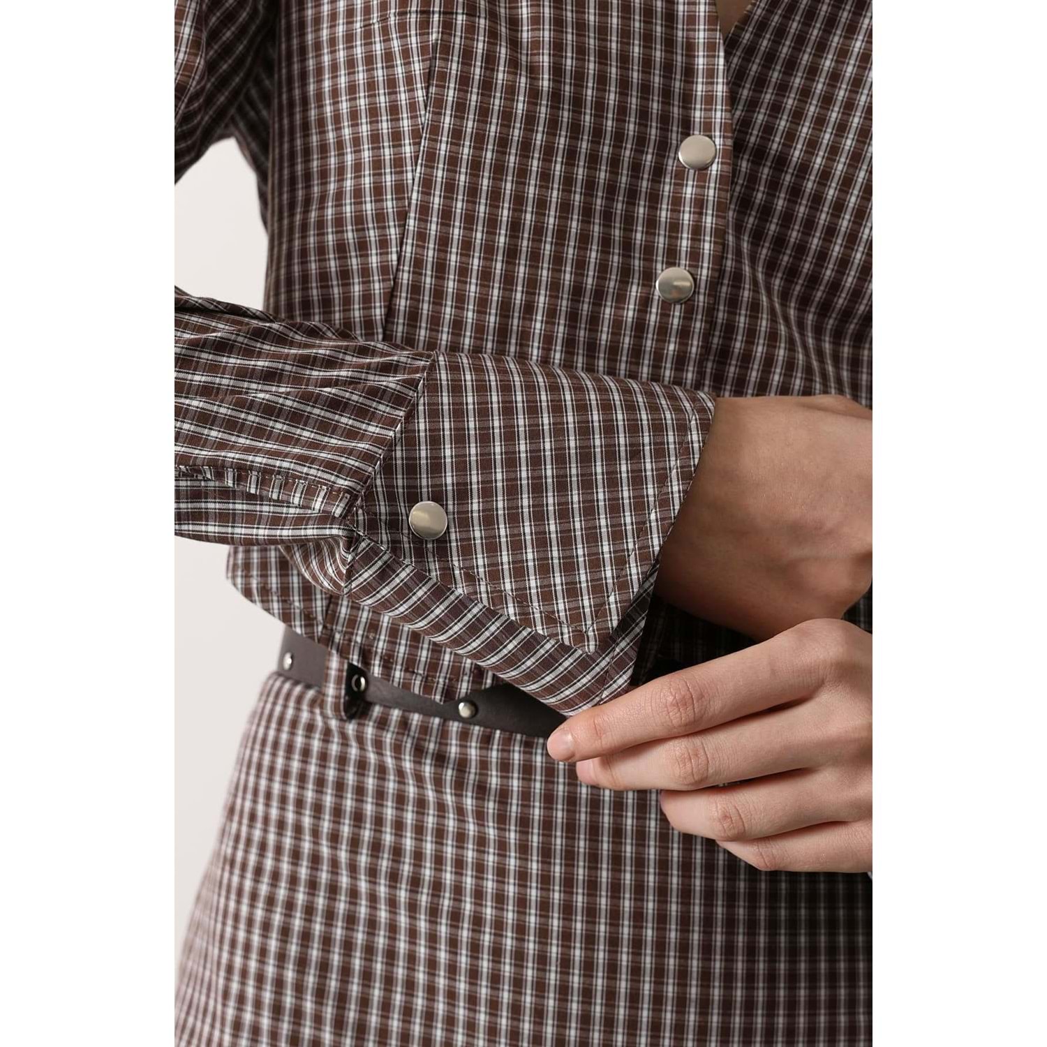 Pötükare Desen Elegant Düğme Detay Alt Üst Takım - KAHVERENGİ - M
