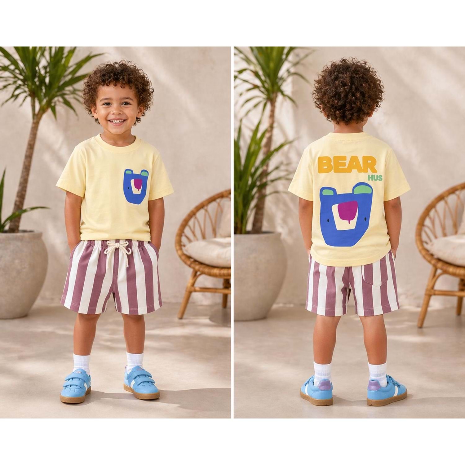 Splash Summer Set Yeni Sezon Unisex Soft Sarı Alt Üst Takım - SARI - 5-6 YAŞ