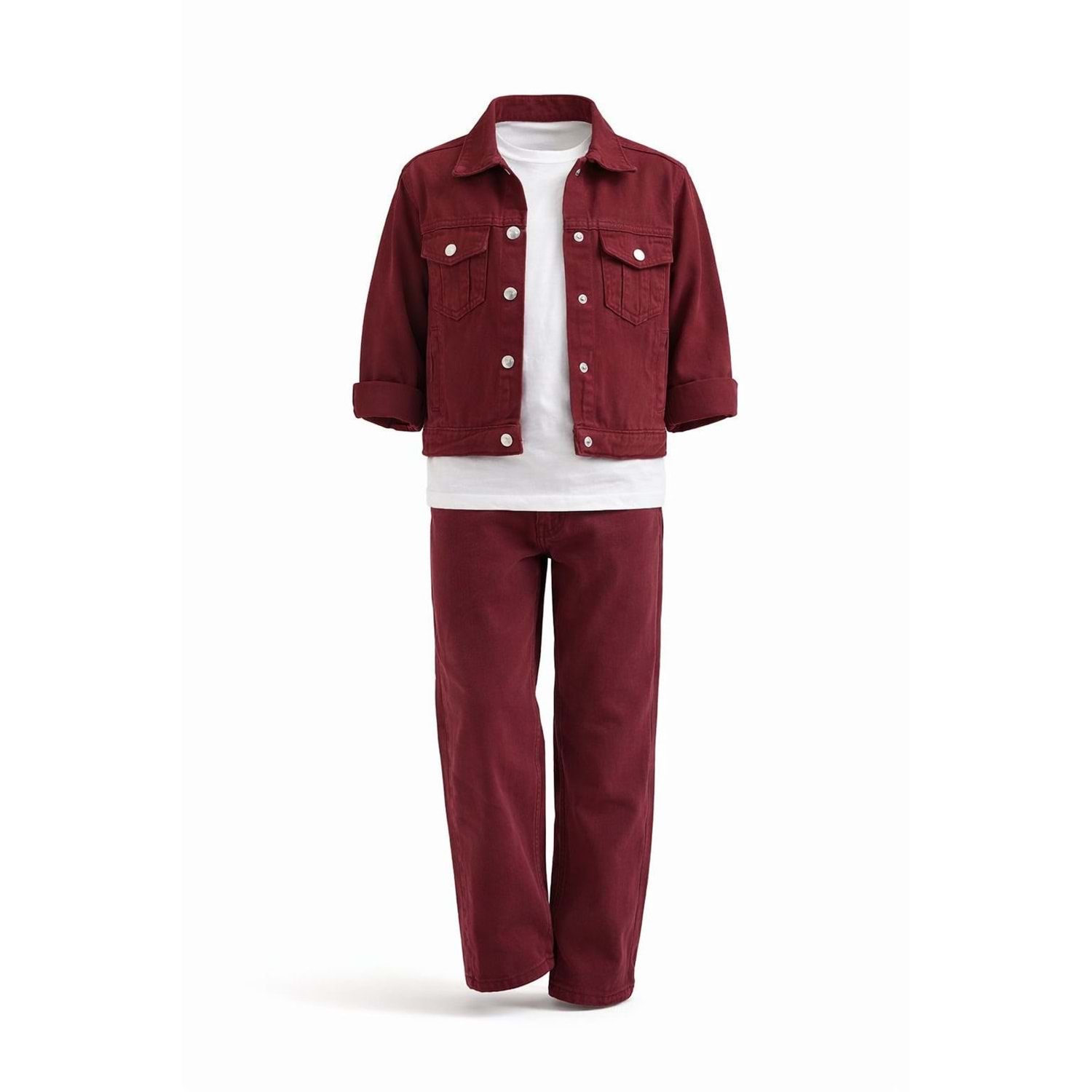 Unisex Çocuk Bordo Renk Denim - Kot Pantolon