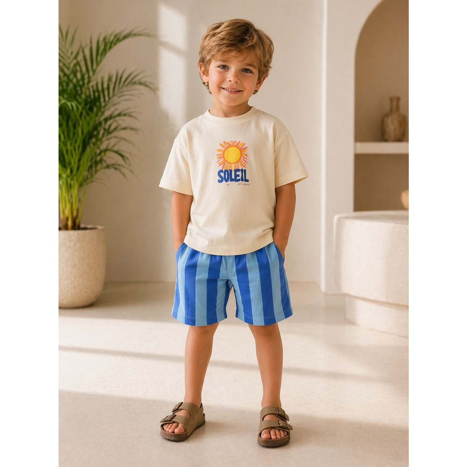 Yeni Sezon Çizgili Şortlu Alt Üst Takım Rahat Kesim Blue Breeze - AÇIK MAVİ - 2-3 YAŞ