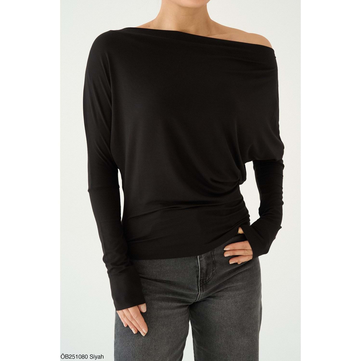 Düşük Omuz Viskon Bluz - SİYAH - M - ST00635-SİYAH-M