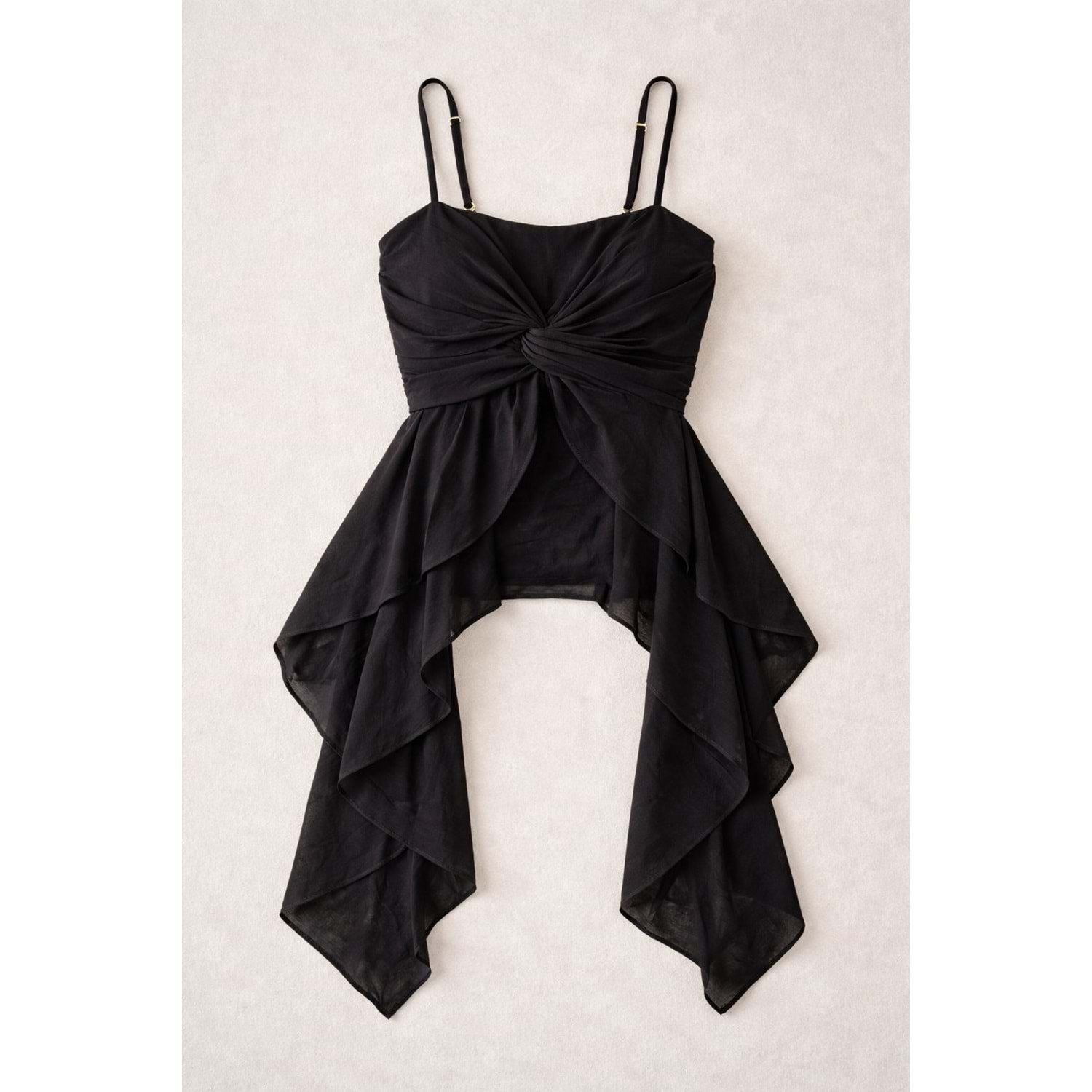 Asimetrik Kesim Askılı Tasarım Viskon Bluz Fashion Girl ! - SİYAH - L