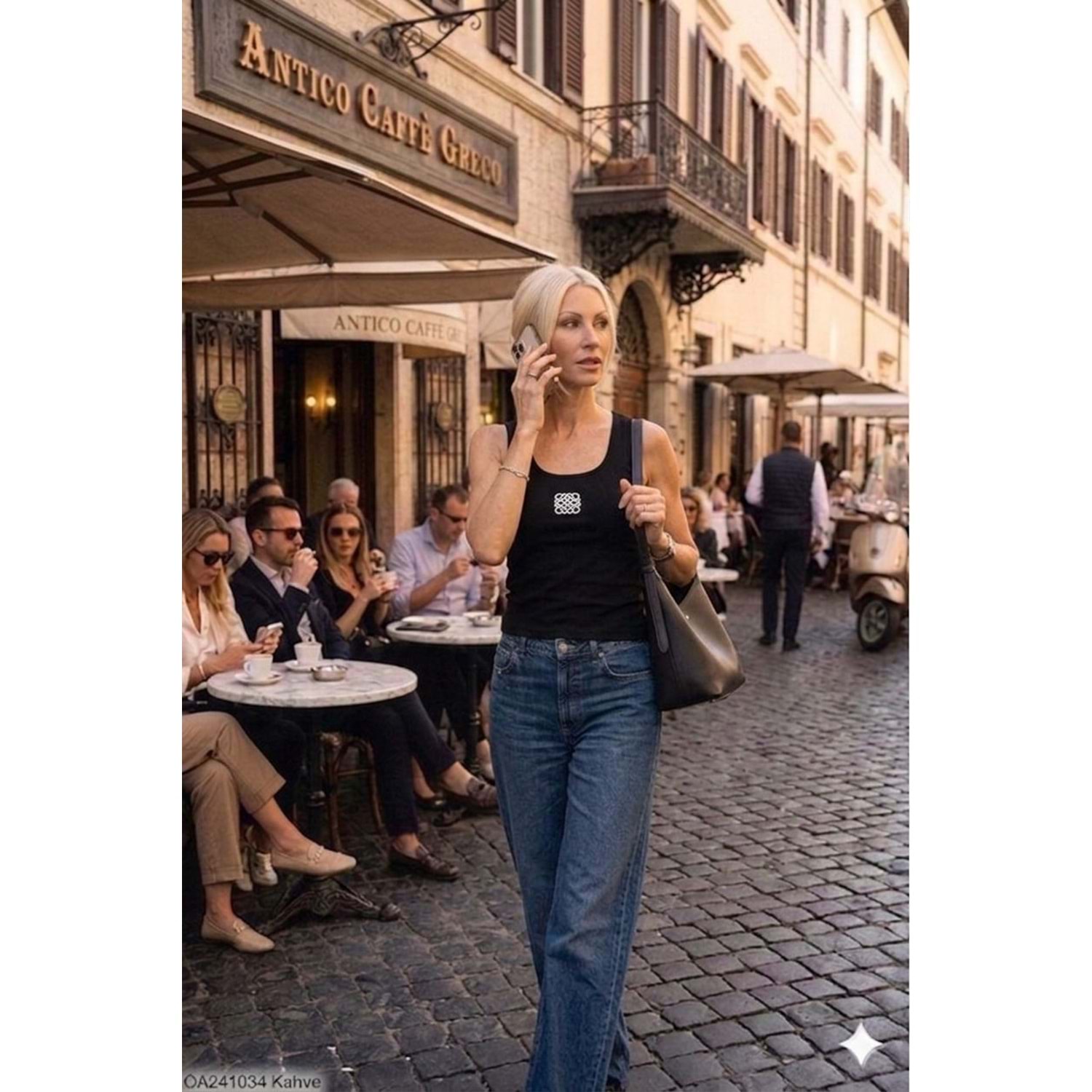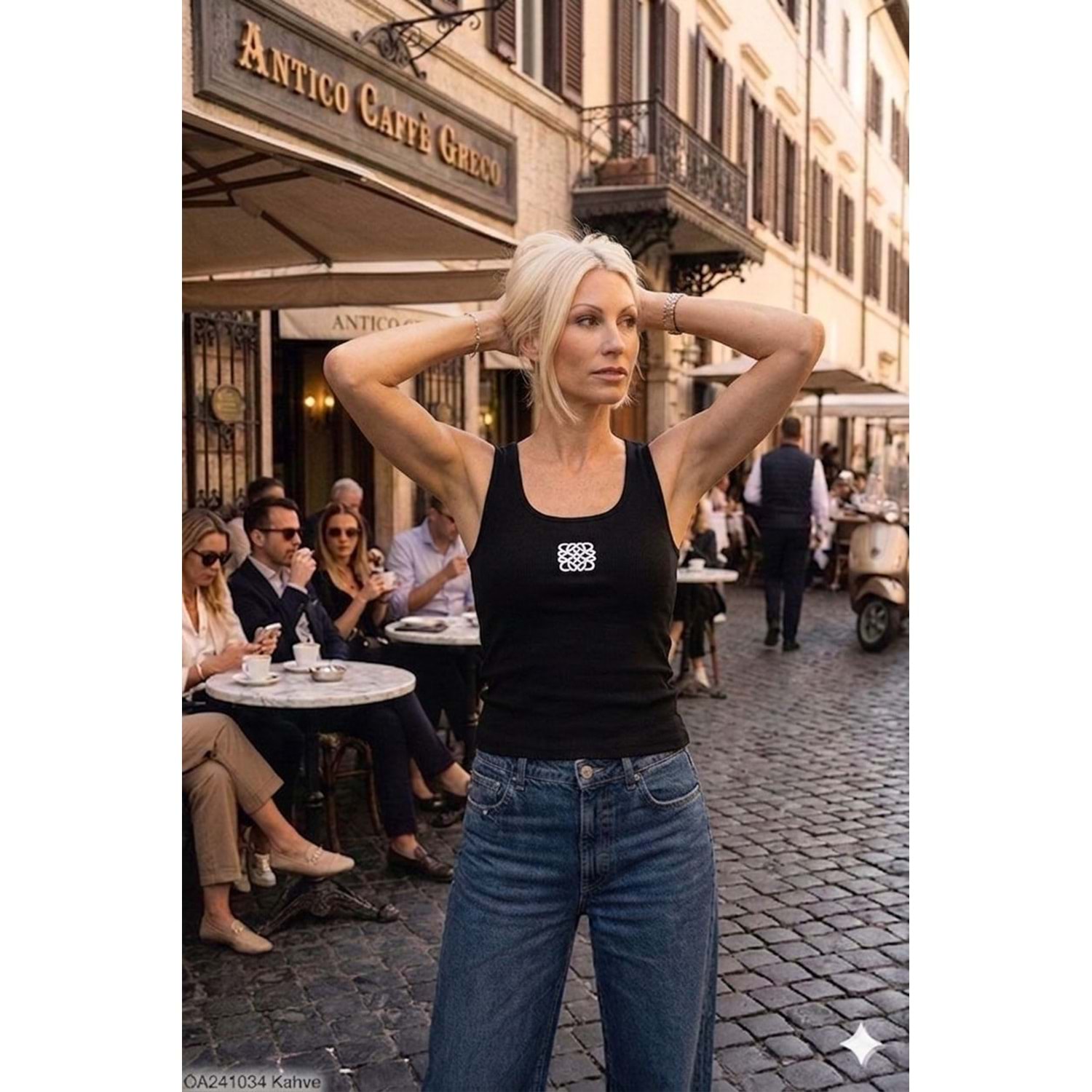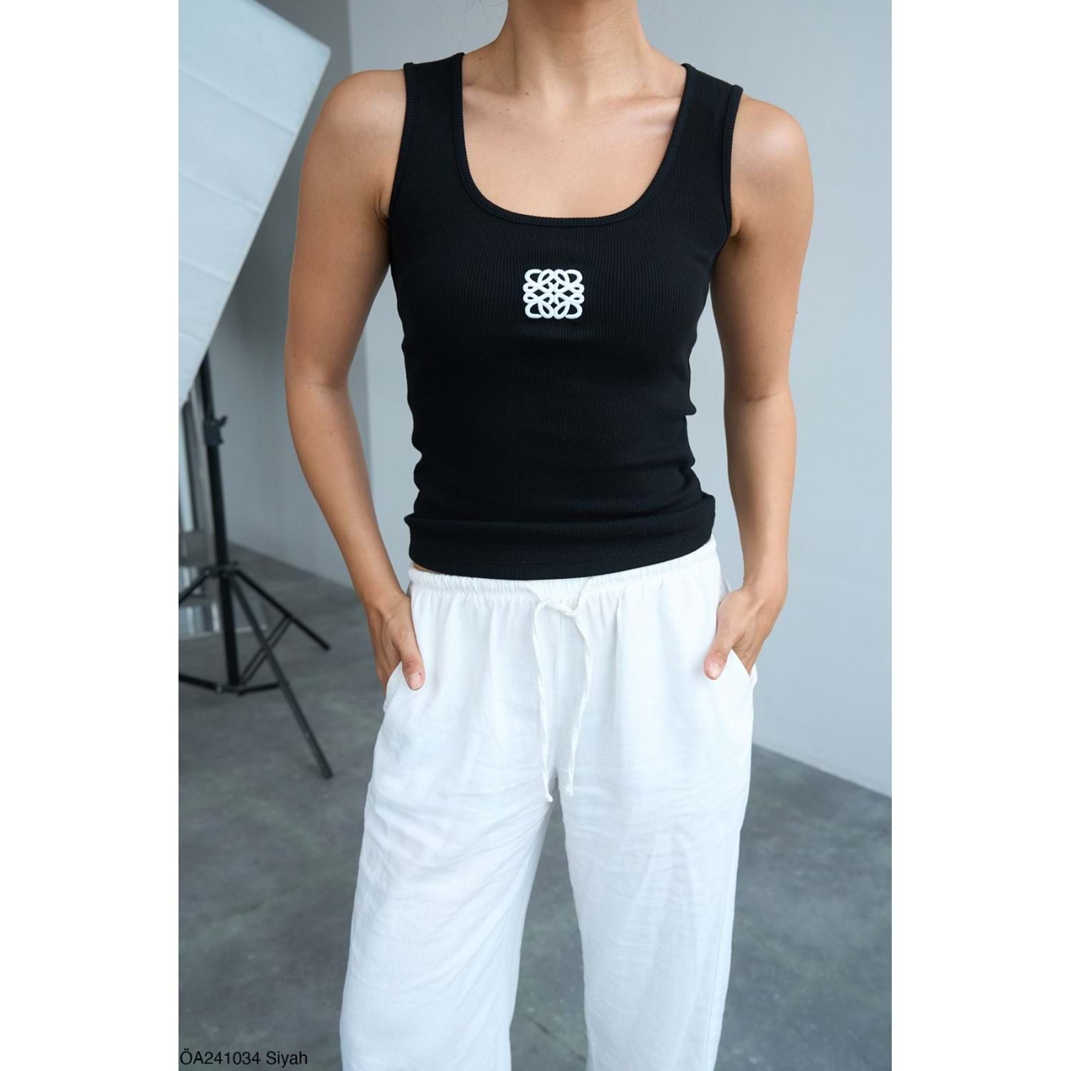 Göğüs Nakış Detaylı Askılı Kaşkorse Bluz - SİYAH - L