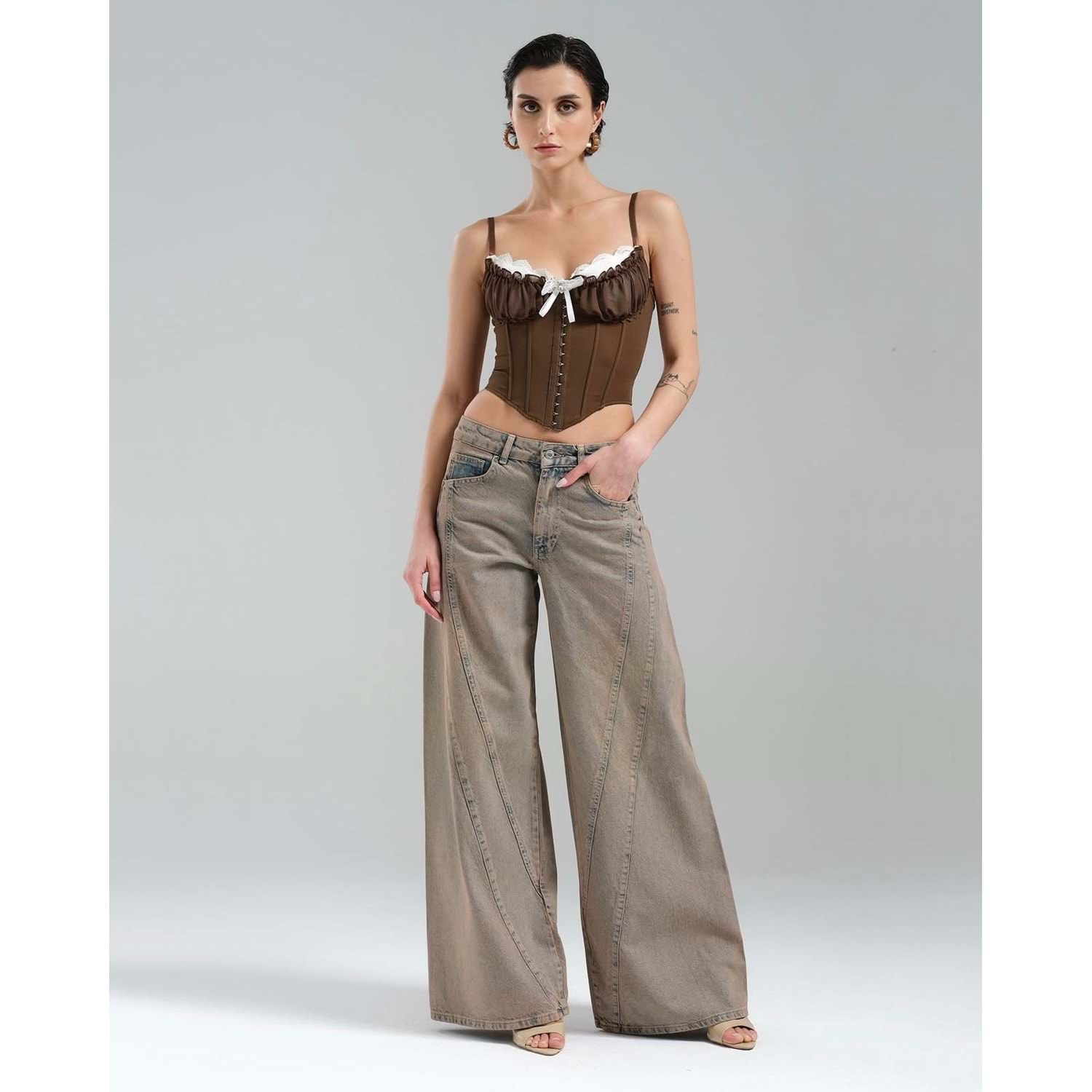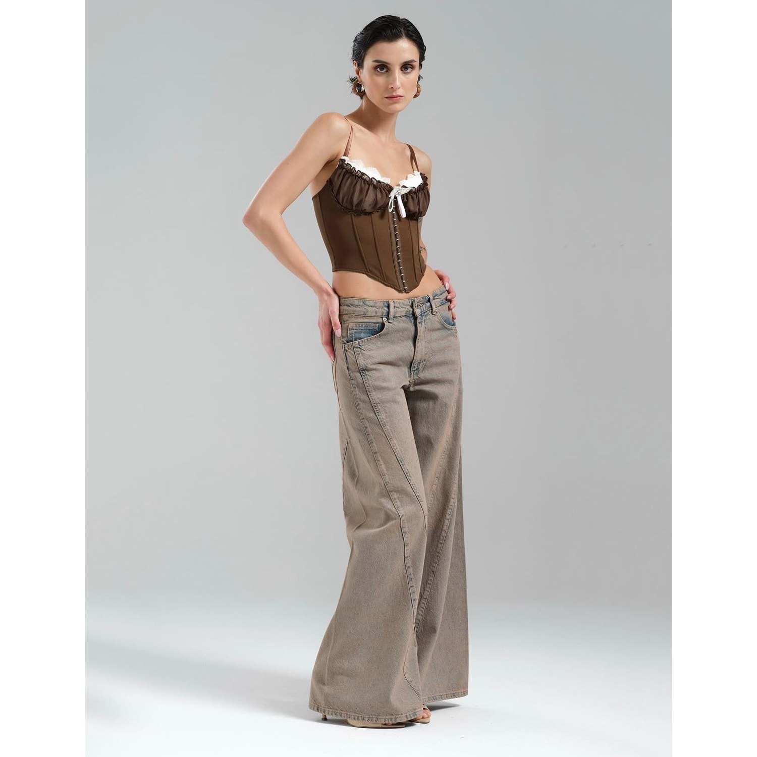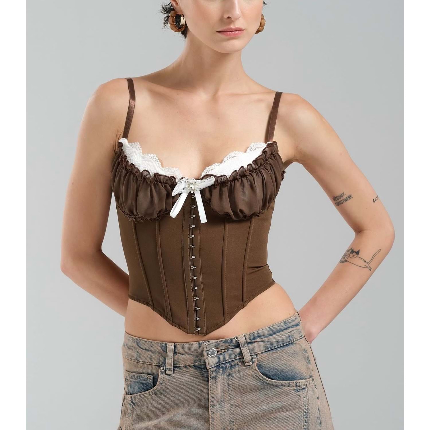 Kopça Kapamalı Tasarım Korse Büstiyer - Premium Kalite Bluz - KAHVERENGİ - L
