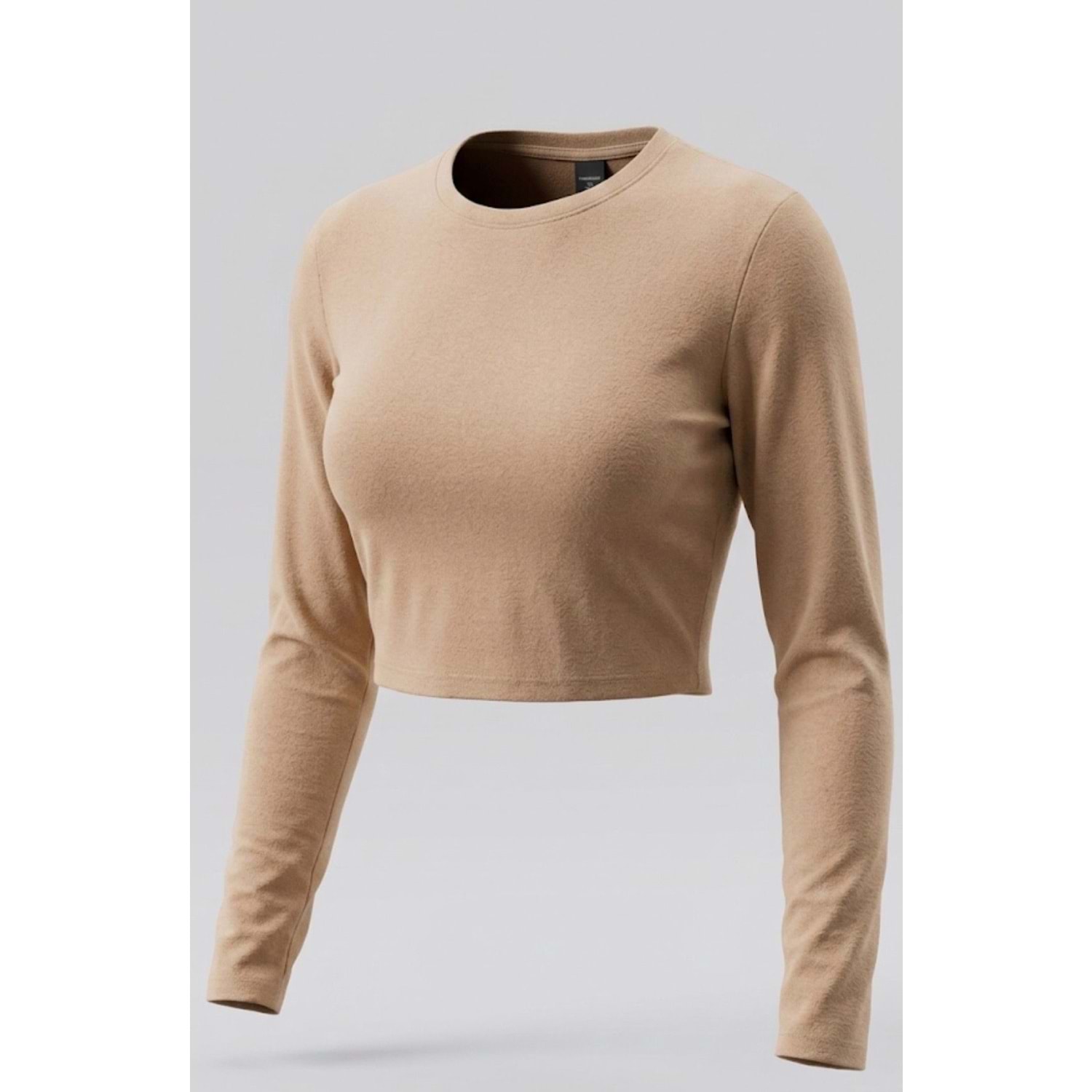 Monaco Basic Crop Bluz Uzun Kol Modal Pamuk - BEJ - L
