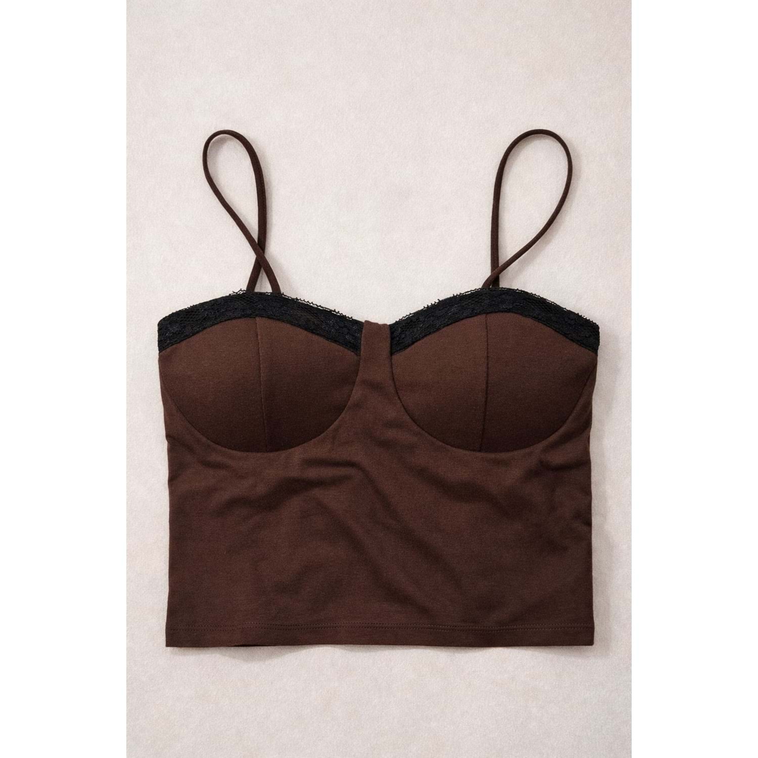 Sweet Lace Crop Büstiyer Body Dantel Detay - Acı Kahve - L