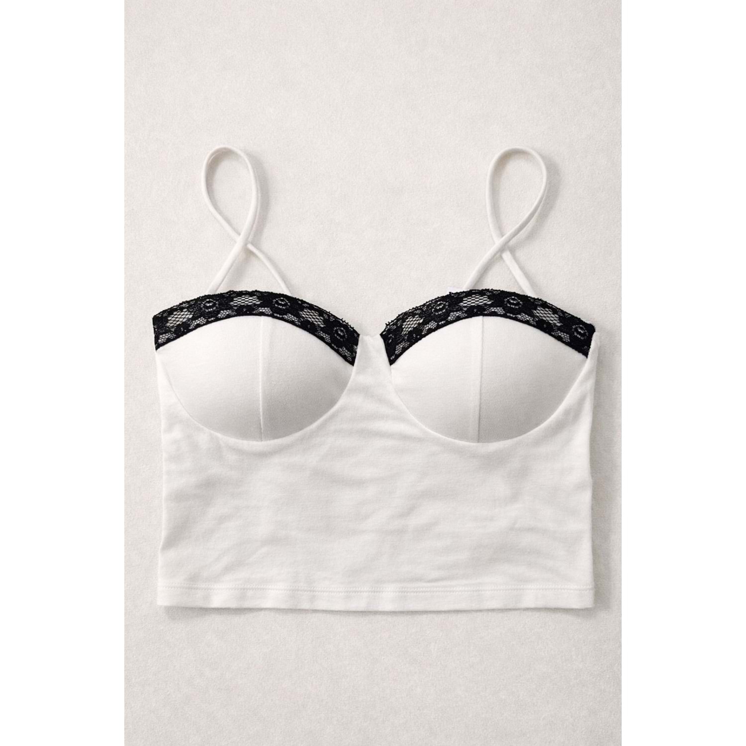 Sweet Lace Crop Büstiyer Body Dantel Detay - BEYAZ - L