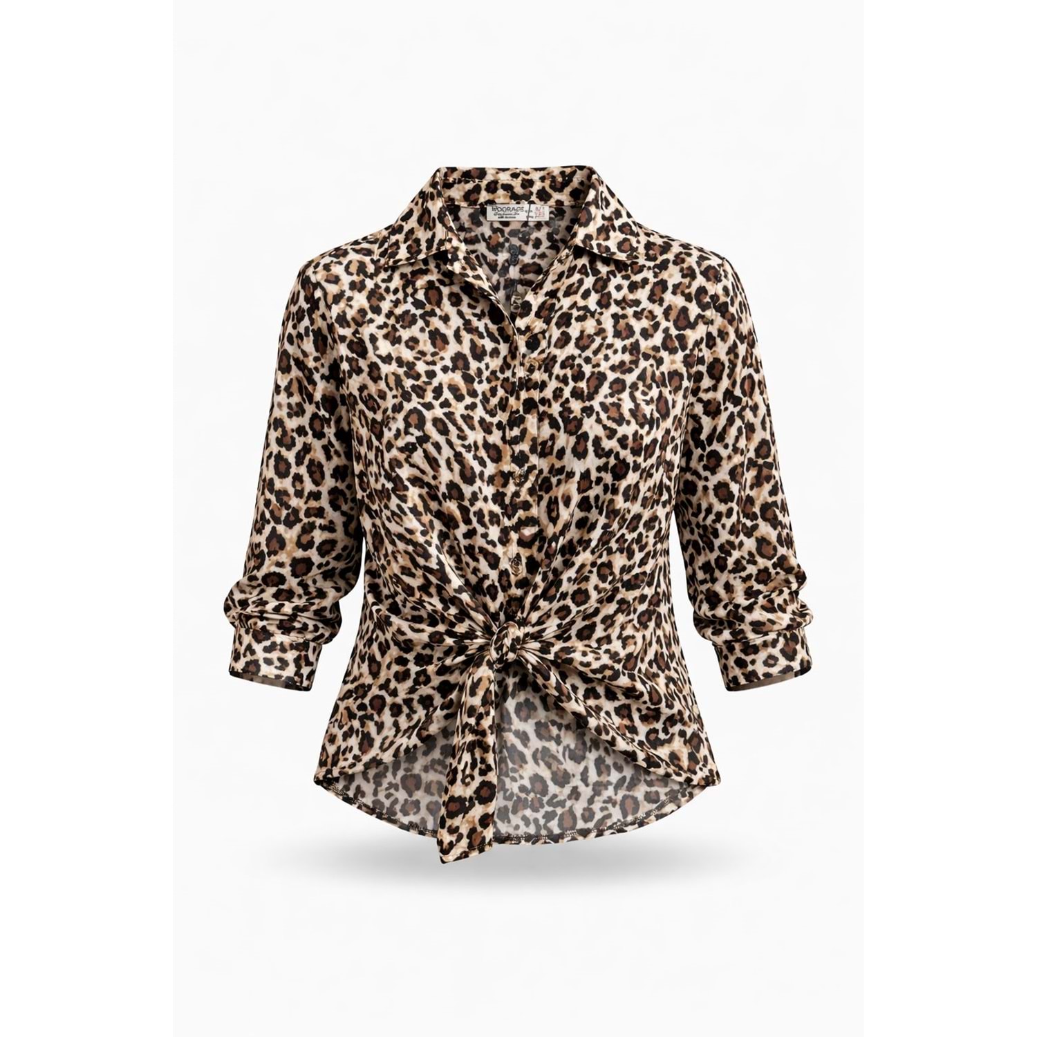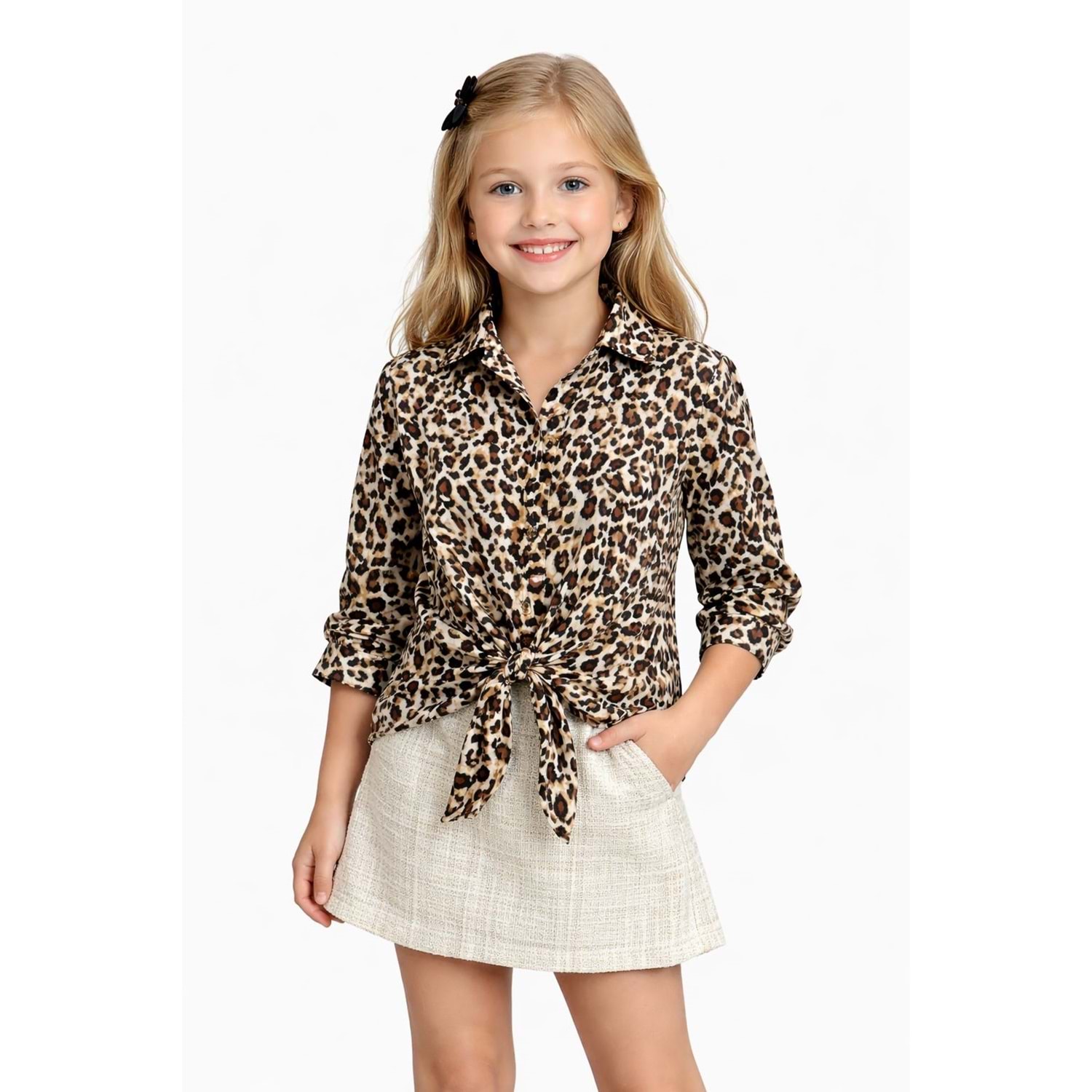 Kız Çocuk Leopar Desen Bel Bağlama Detay Tasarım Gömlek - LEOPAR - 5-6 YAŞ