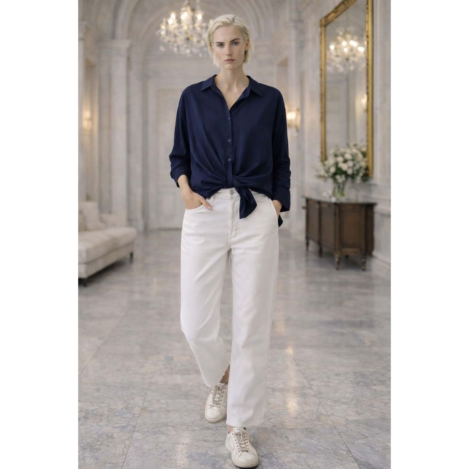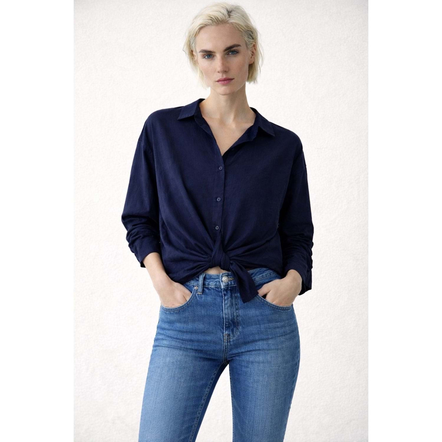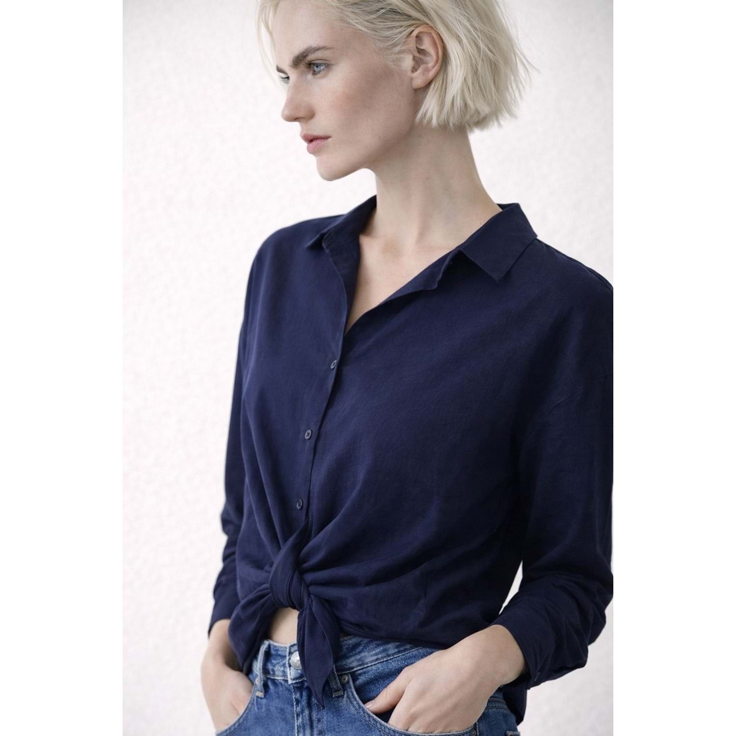 Signature - Bağlama Detay Görünüm Lacivert Renk Gömlek - LACİVERT - L