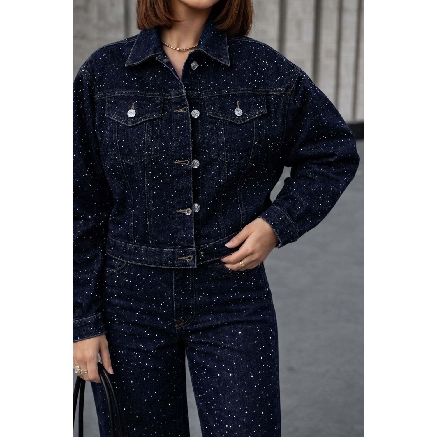 Taşlı Parıltı Detaylı Party! Tasarım Kot Ceket - LACİVERT - M - ST00676-LACİVERT-M