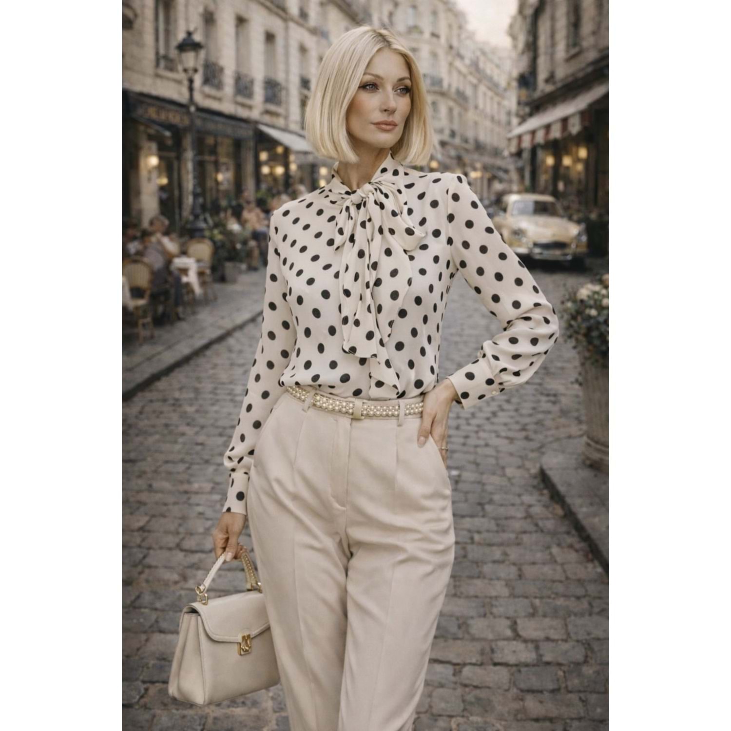 Vintage Paris Puantiye Bluz Coco Pois Ekru - Siyah - EKRU - L