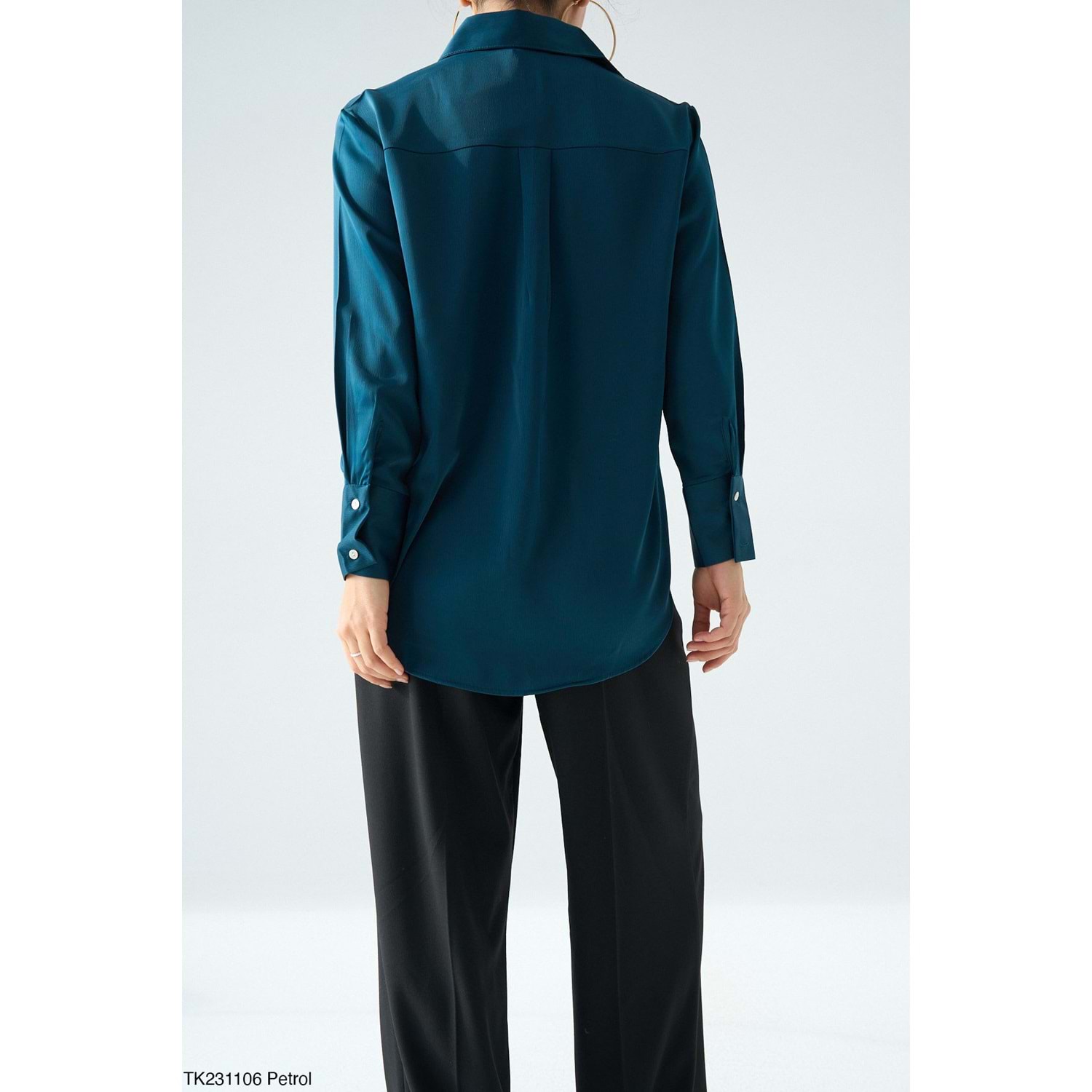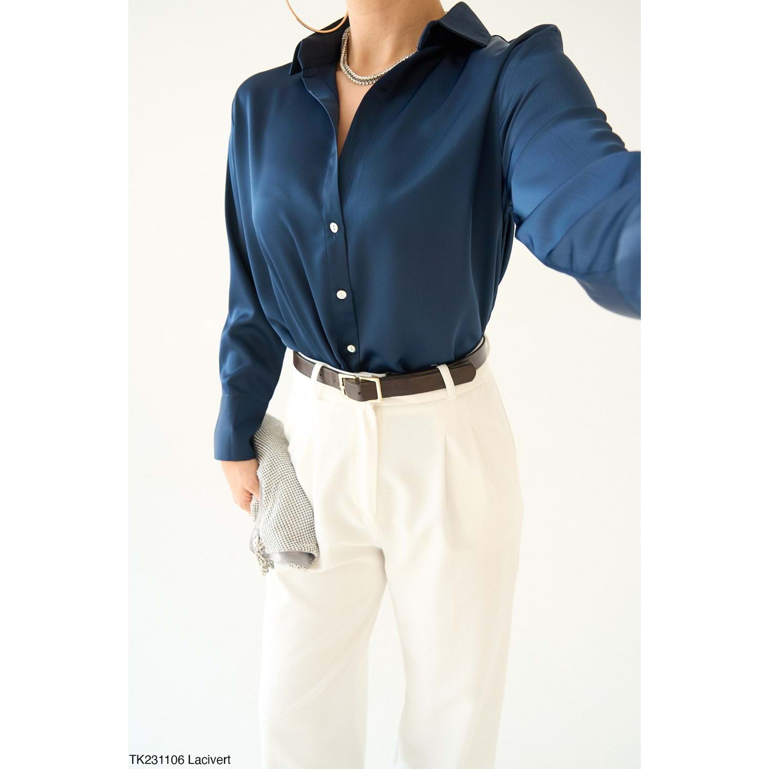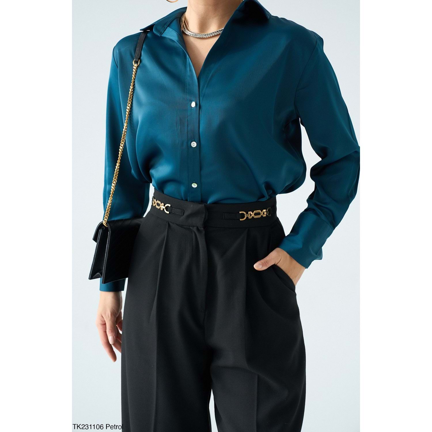 Yeni Sezon Pamuk Saten Gömlek - Petrol Mavi - MAVİ - L