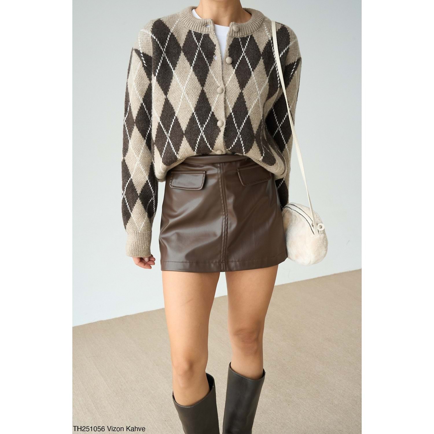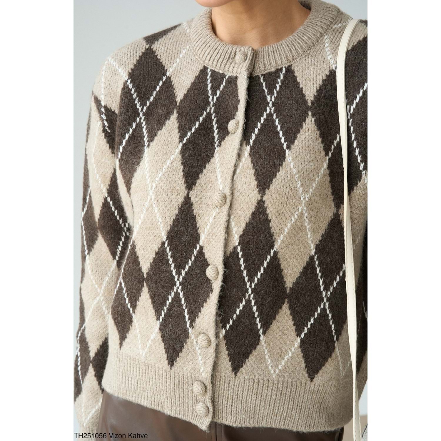 Baklava Desen Vizon Kahve Düğmeli Hırka - SÜTLÜ KAHVE - STANDART - ST00452-SÜTLÜ KAHVE-STANDART