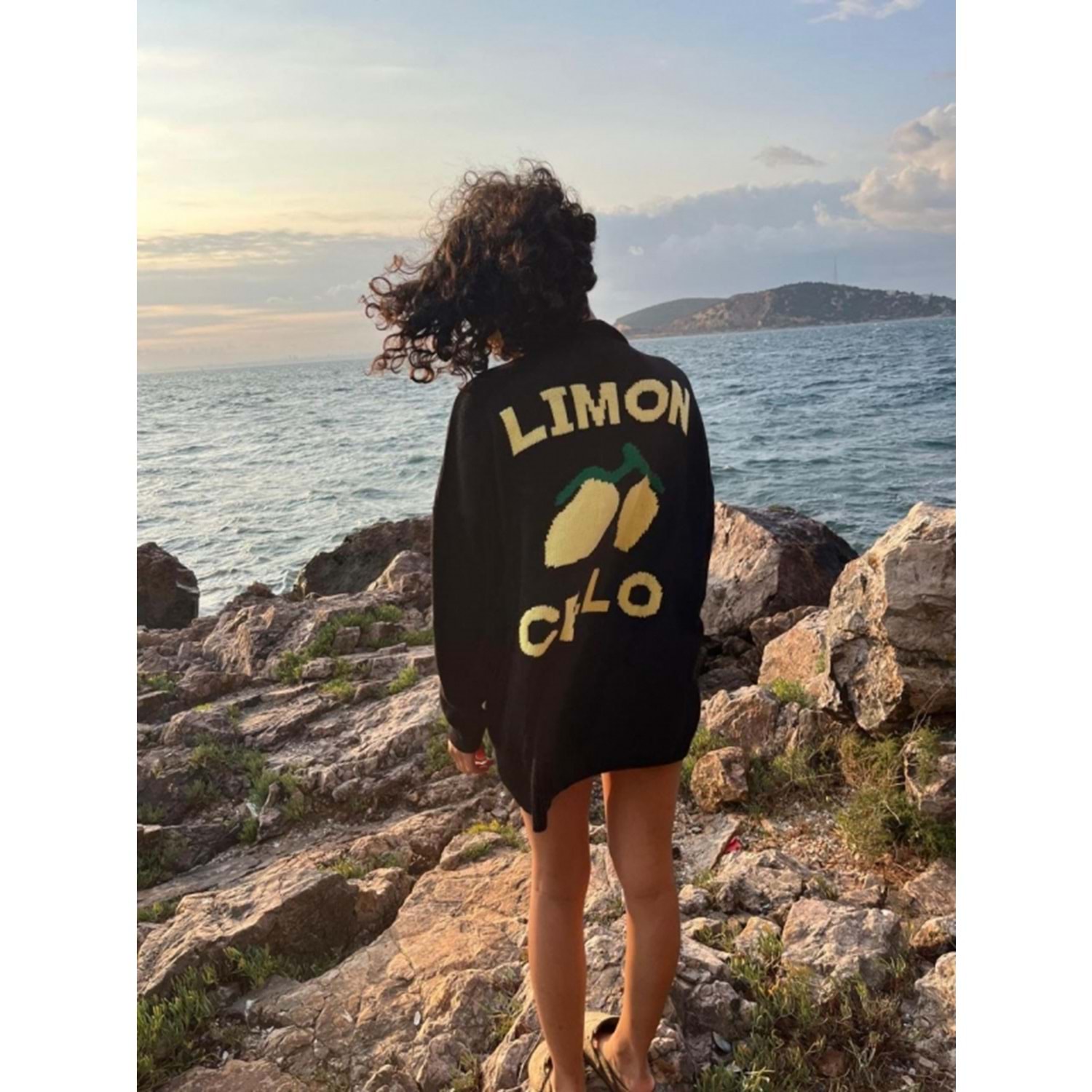 Kadın Giyim Yeni Sezon Siyah Renk Sırt Limon Cello Dokuma Detaylı Düğme Kapamalı Hırka