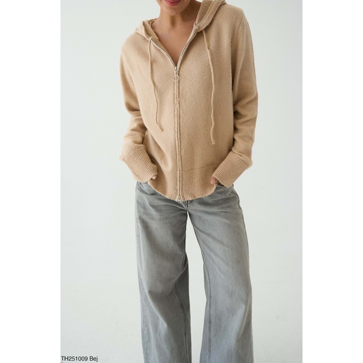 Kapüşonlu Çift Taraf Fermuar Kapama Hırka