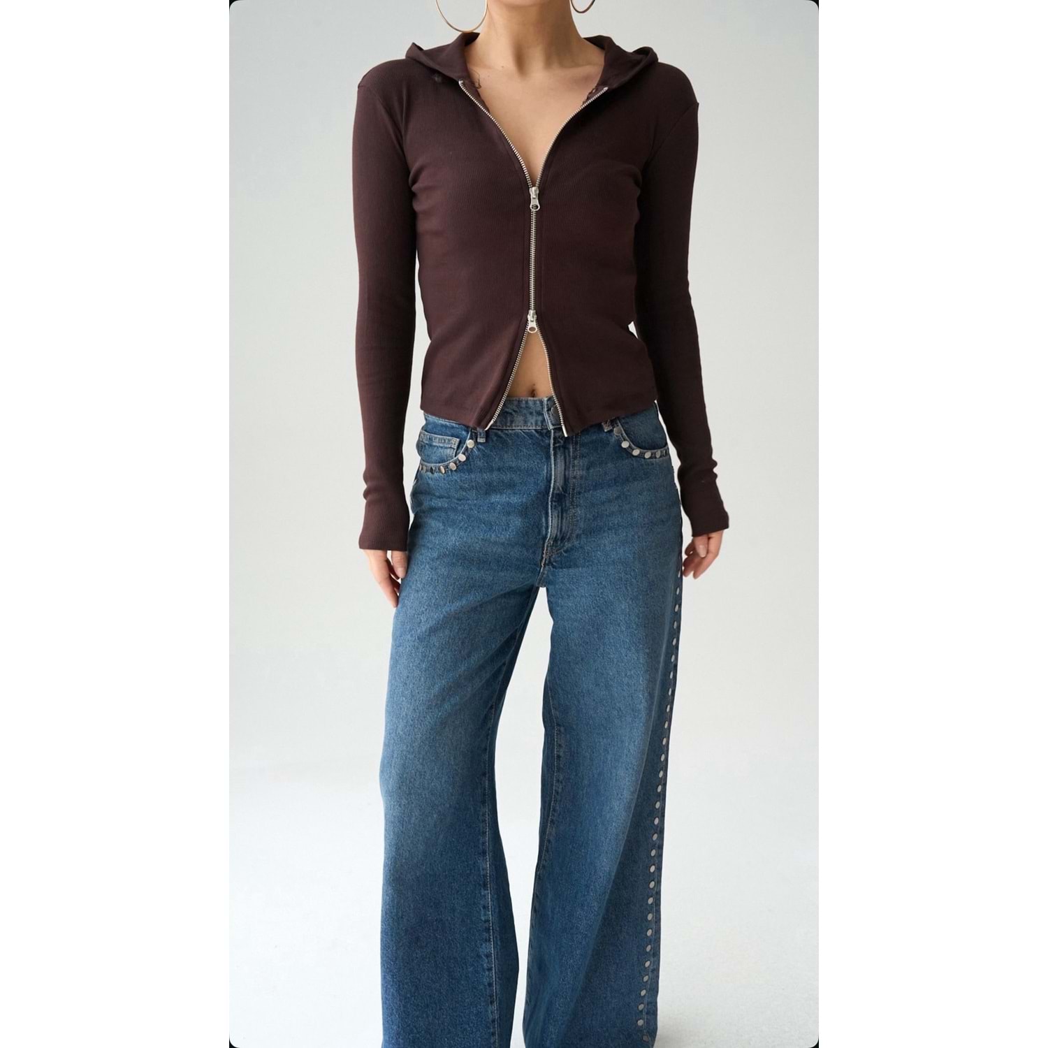 Kapüşonlu Çift Yön Fermuar Detaylı Bluz - İnce Hırka - EKRU - L - ST00644-EKRU-L