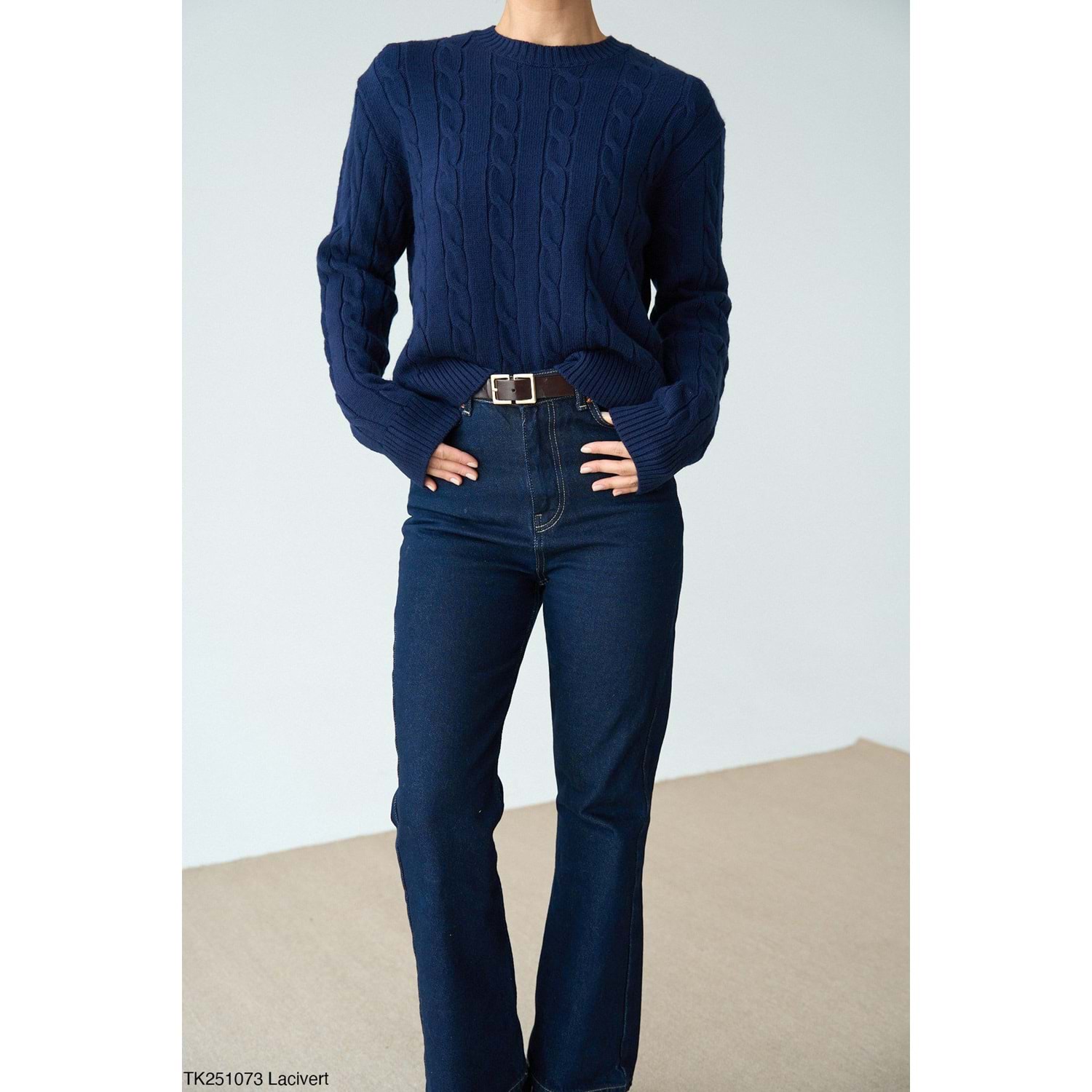 Saç Örgü Detaylı Lacivert Renk Kazak STD